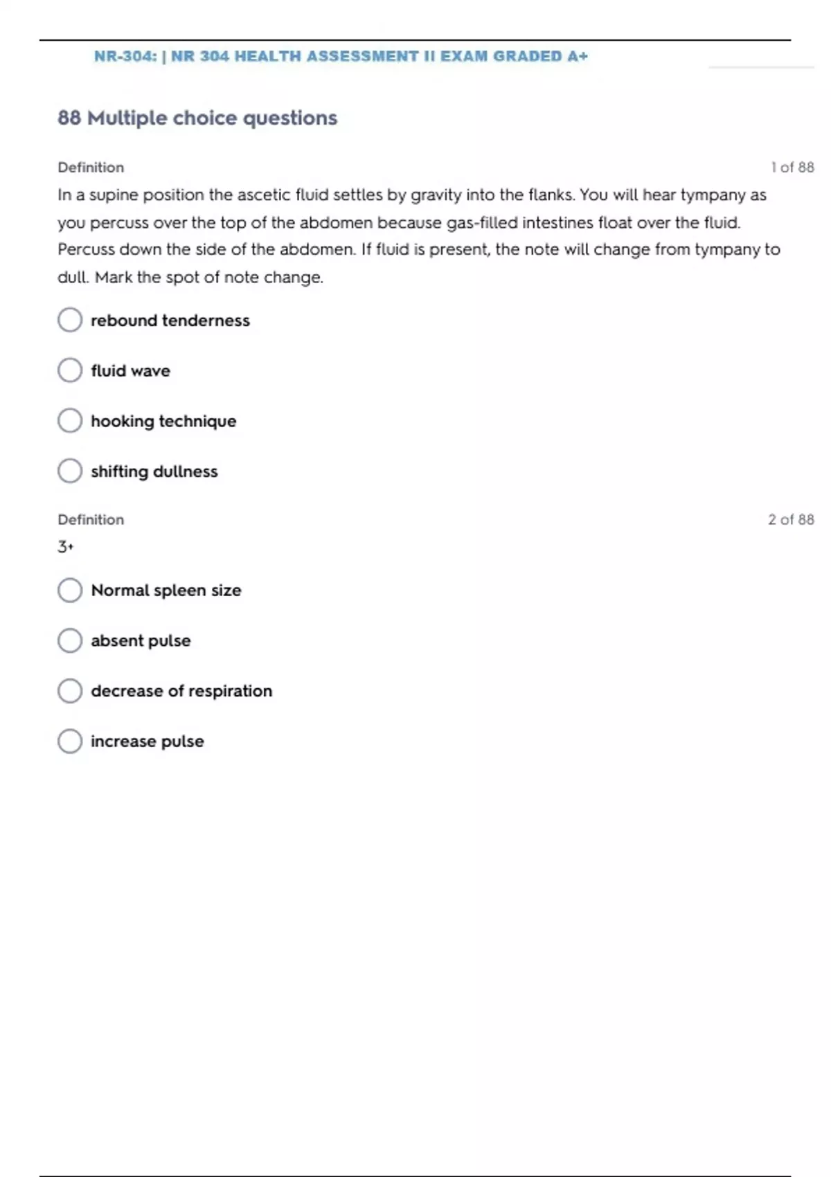 nr 304 health assessment ii pv and abdomen questio