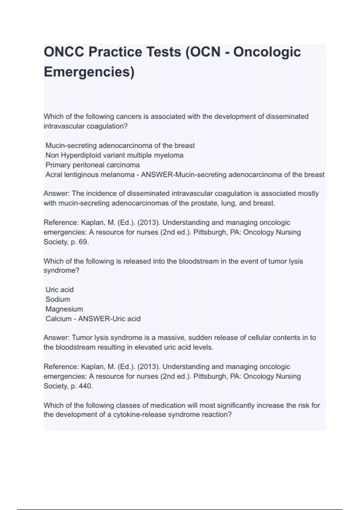ONCC Practice Tests (OCN - Oncologic Emergencies) with complete solution
