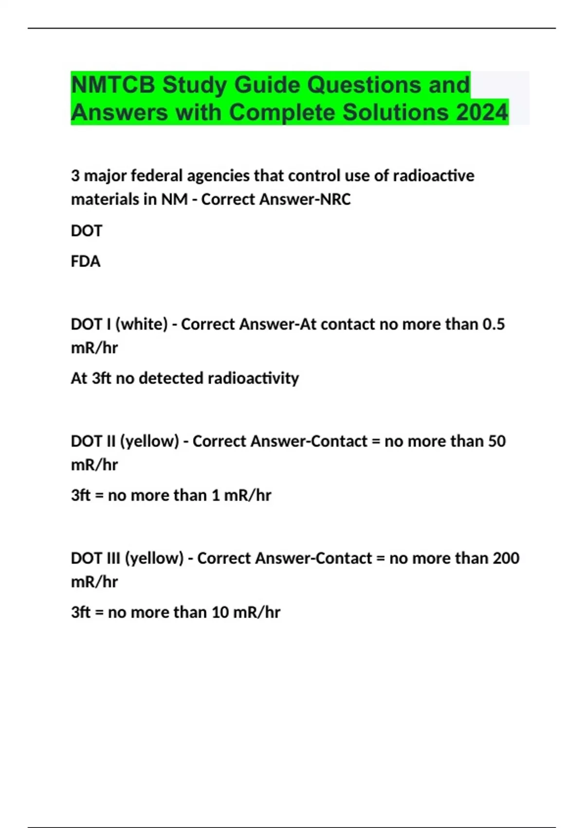 NMTCB Study Guide Questions and Answers with Complete Solutions 2024