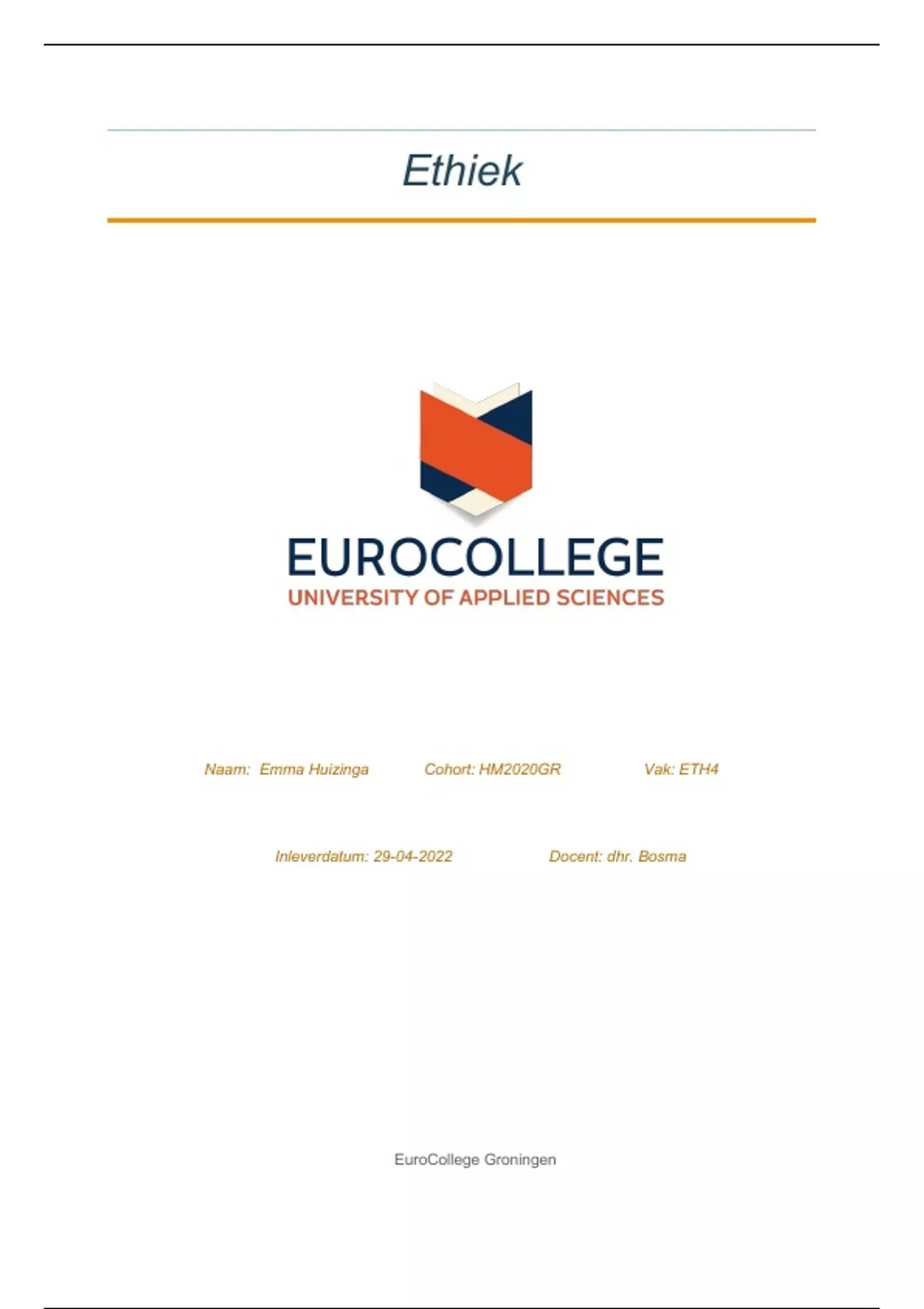 Naam: Emma Huizinga Cohort: HM2020GR Vak: ETH4