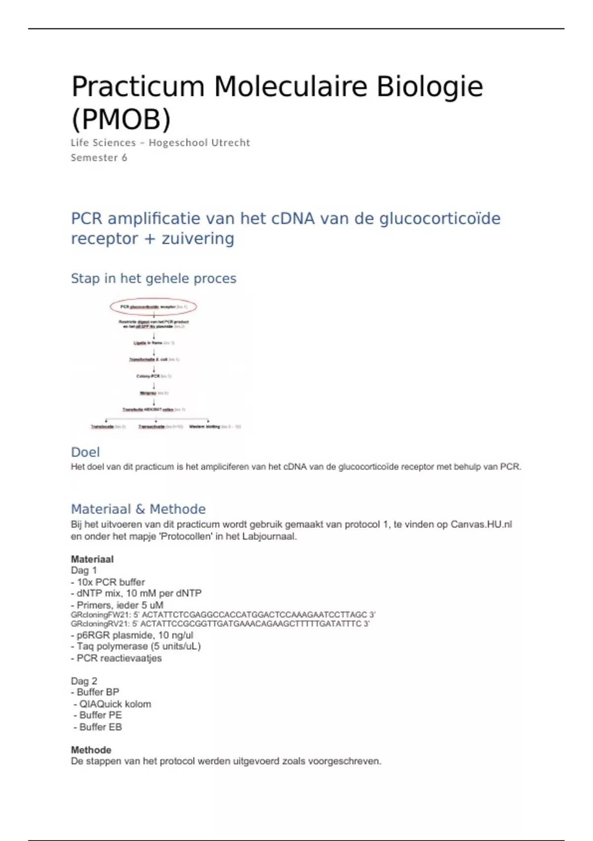 Het doel van dit practicum is het ampliciferen van het cDNA van de glucocorticoïde receptor met behulp van PCR.