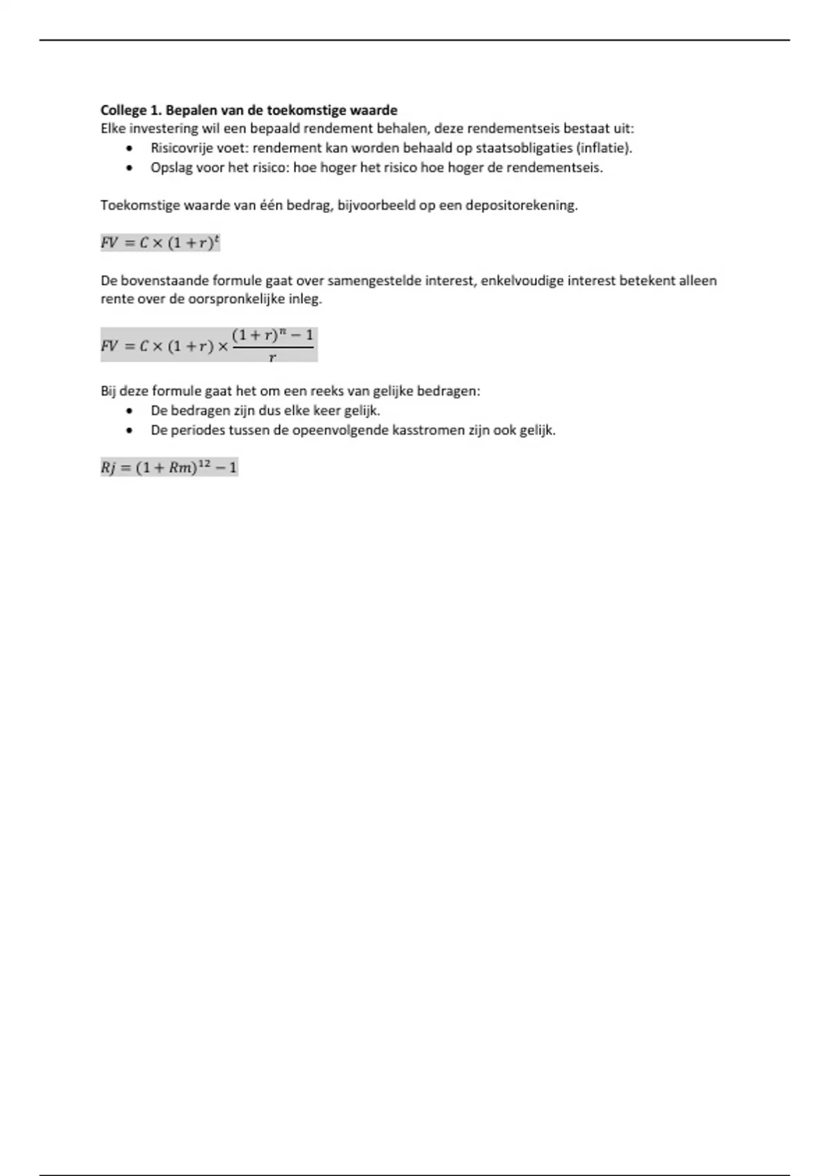 • Risicovrije voet: rendement kan worden behaald op staatsobligaties (inflatie).