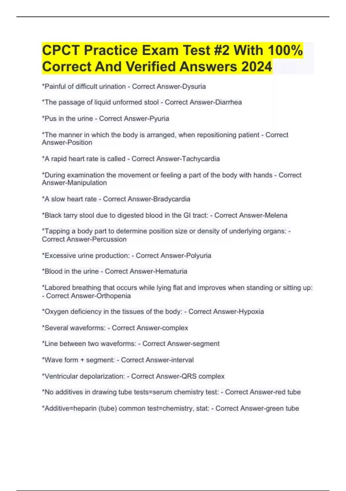 CPCT Practice Exam Test #2 With 100% Correct And Verified Answers 2024
