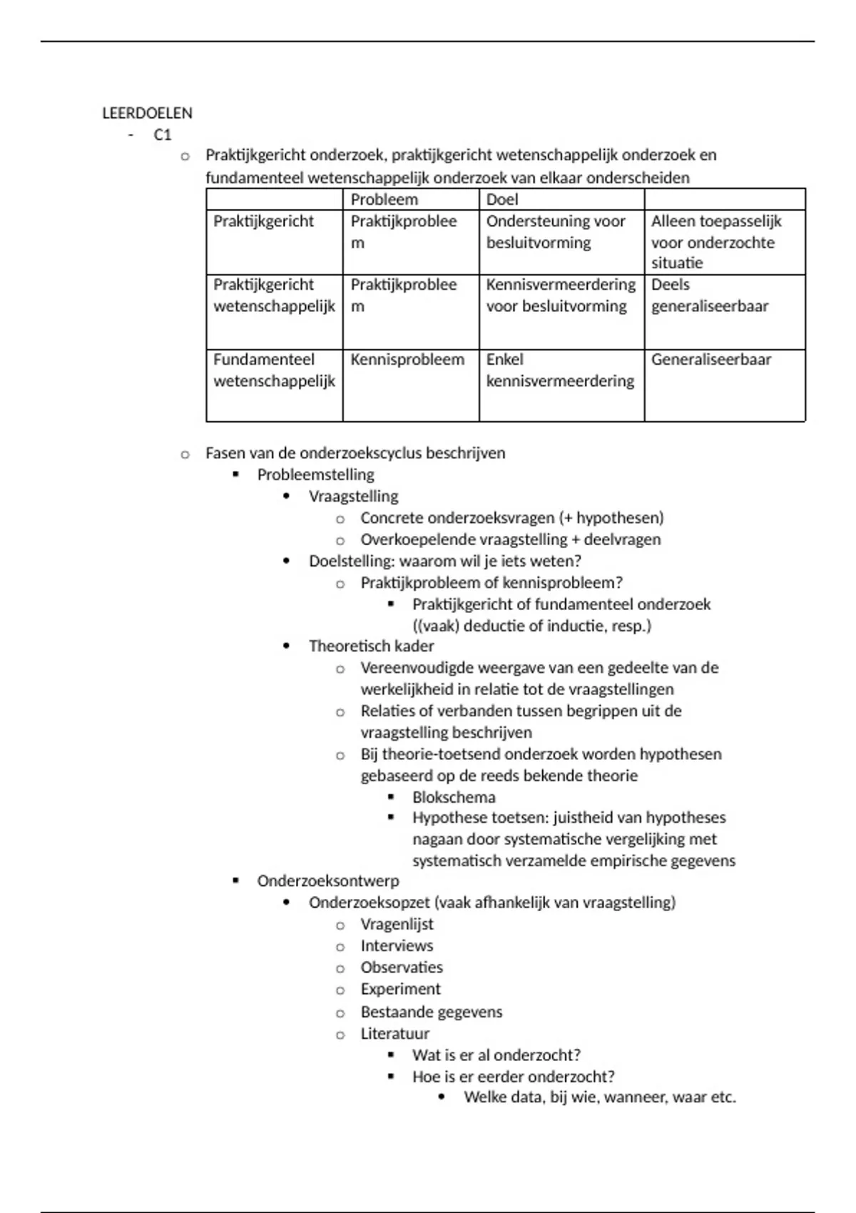 o Fasen van de onderzoekscyclus beschrijven