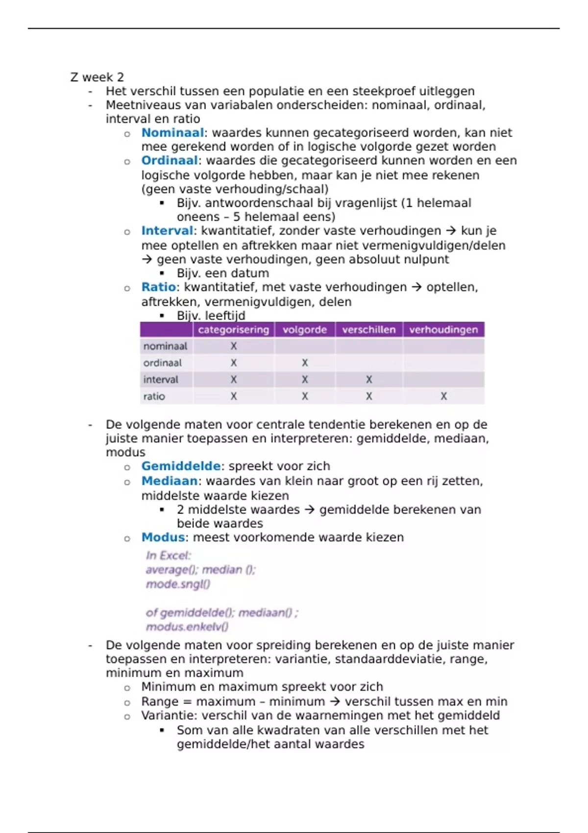 - Meetniveaus van variabalen onderscheiden: nominaal, ordinaal,