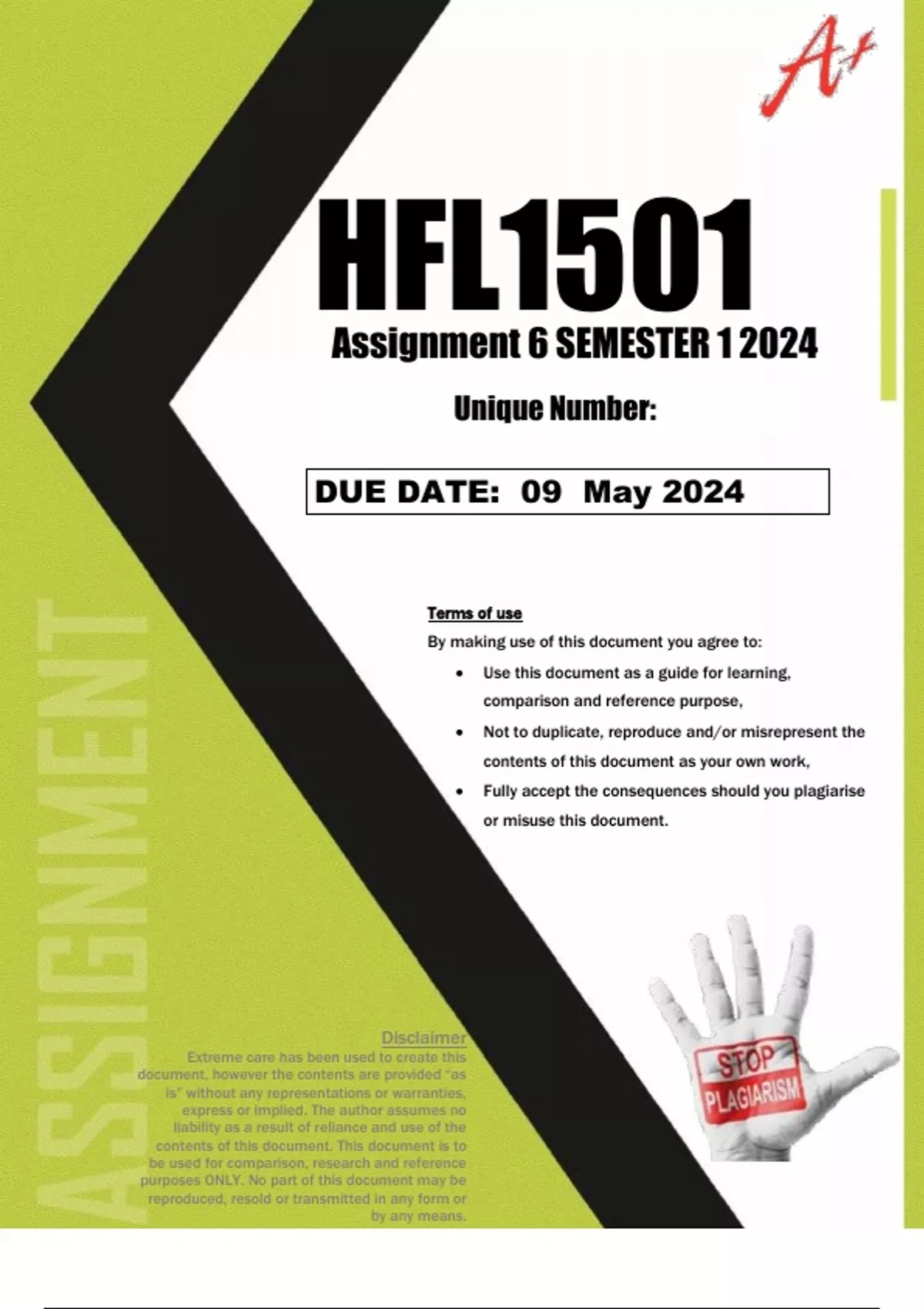100% accurate and reliable assignment solutions HFL1501 assignment 6 semester 1 2024.