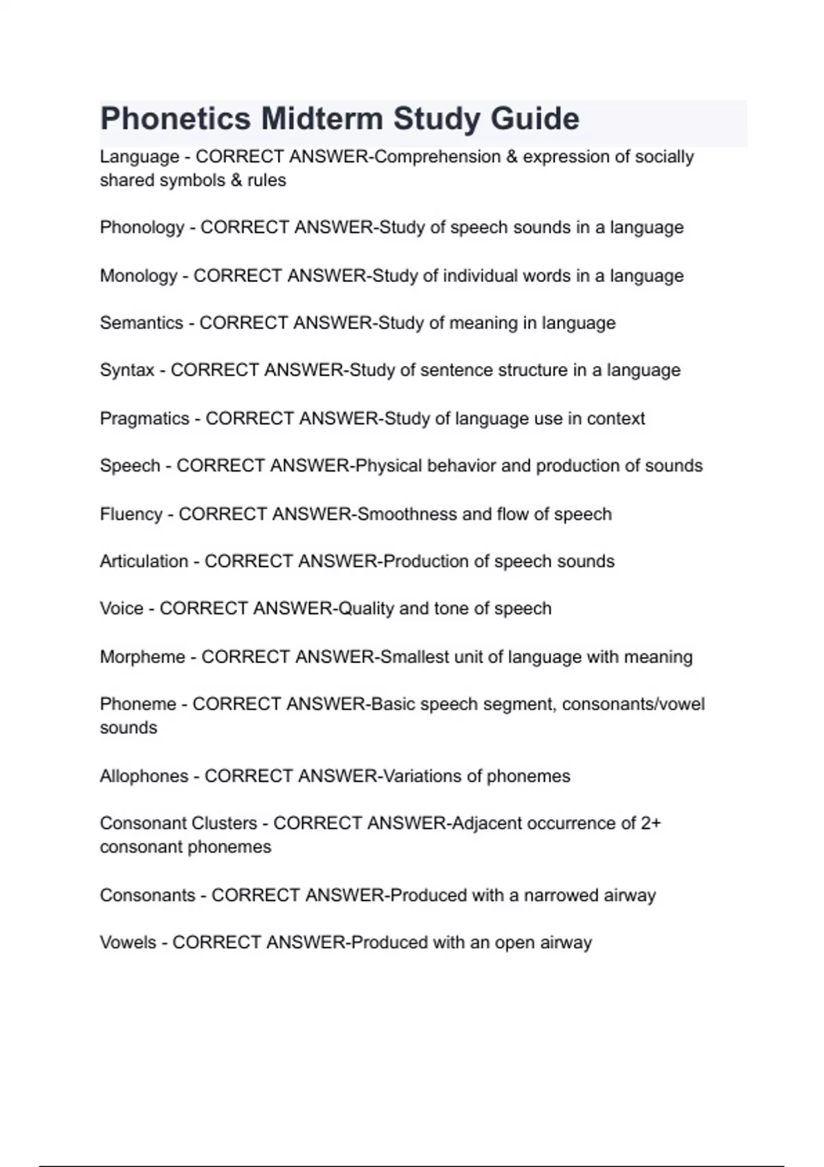 Phonetics Midterm Study Guide with complete solution