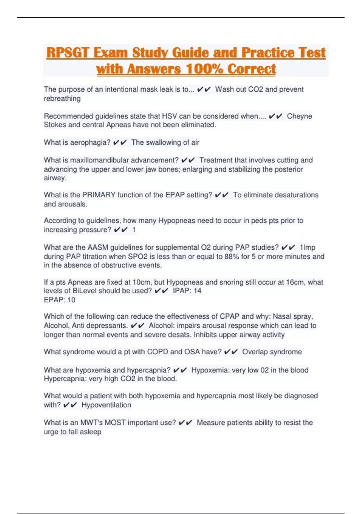 RPSGT Exam Study Guide and Practice Test with Answers 100% Correct