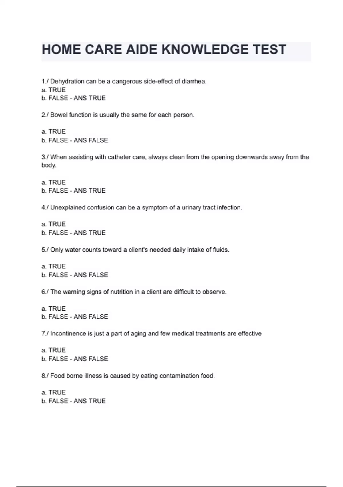 HOME CARE AIDE KNOWLEDGE TEST Exam 2024/2025 Questions With Completed Solutions.