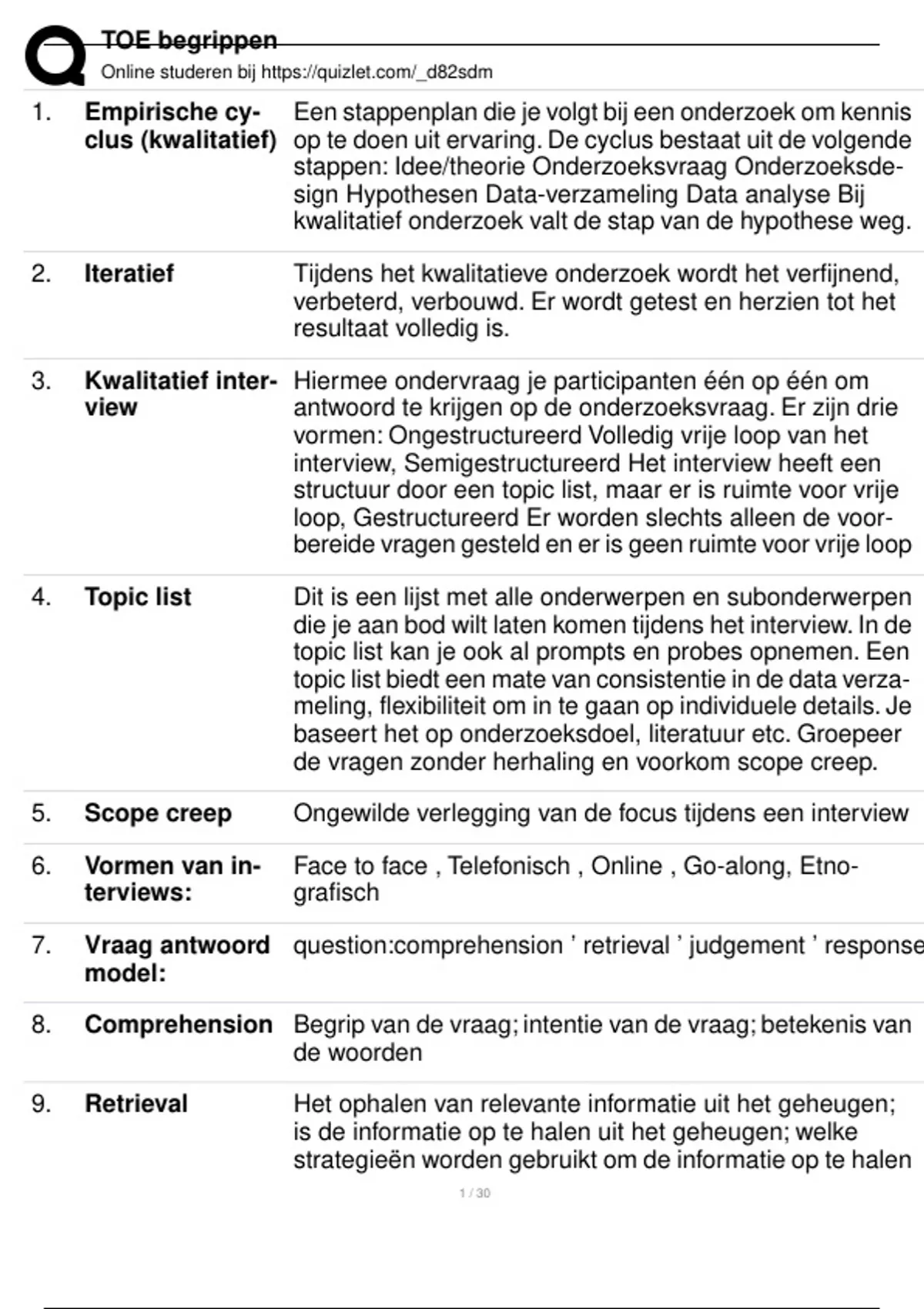 28. Eliciterende re- Het betekend uitlokken, je wilt dat een respondent je meer