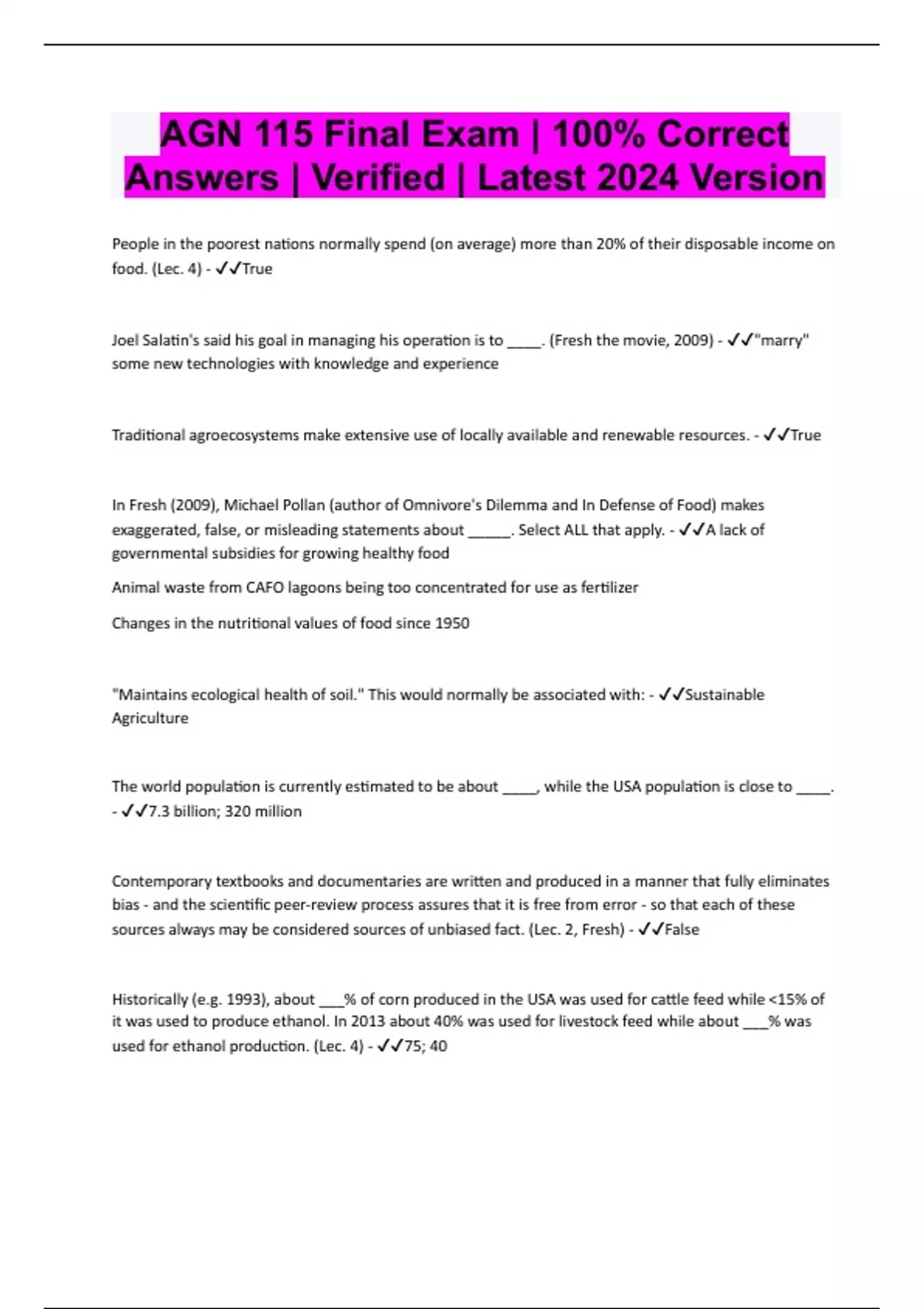 AGN 115 Final Exam | 100% Correct Answers | Verified | Latest 2024 Version