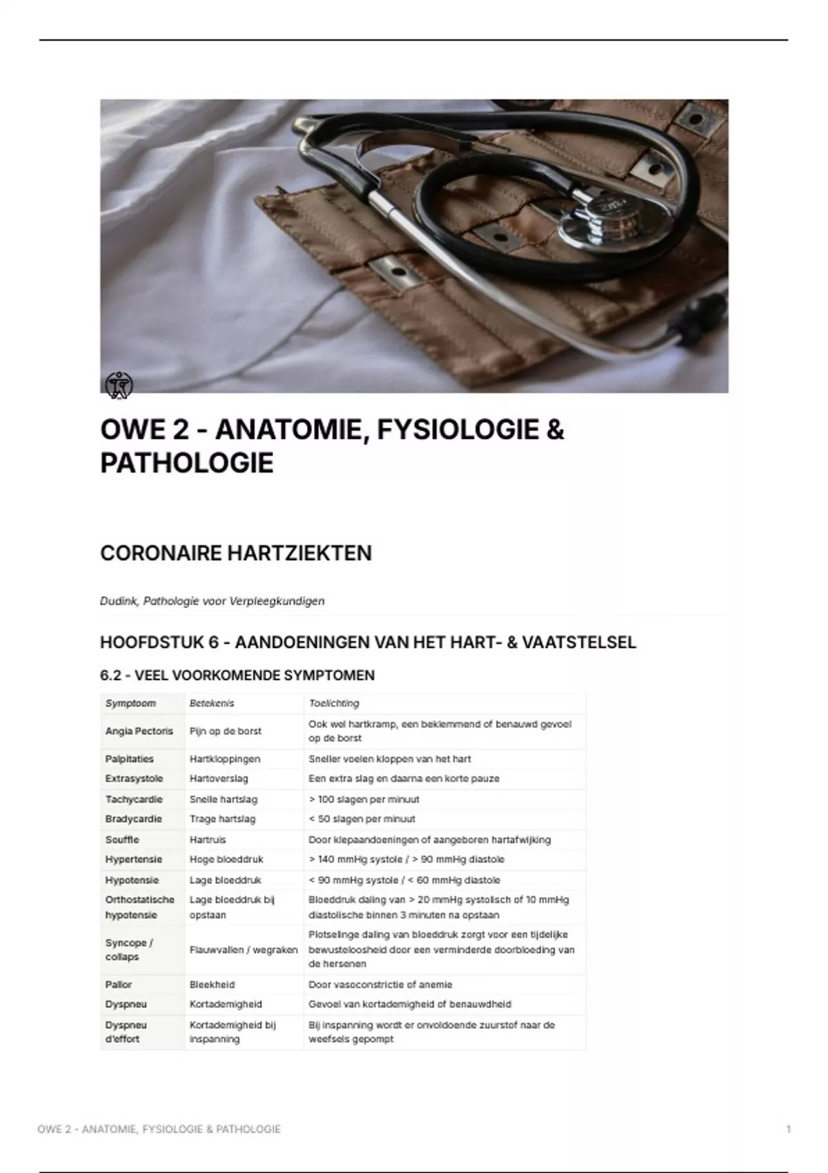 Samenvatting OWE 2 HAN - ANATOMIE, FYSIOLOGIE & PATHOLOGIE