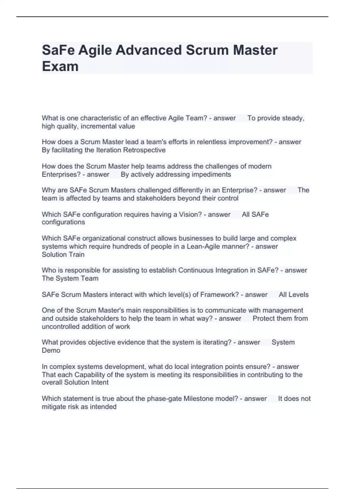 SaFe Agile Advanced Scrum Master Exam Questions and Answers 100% correct