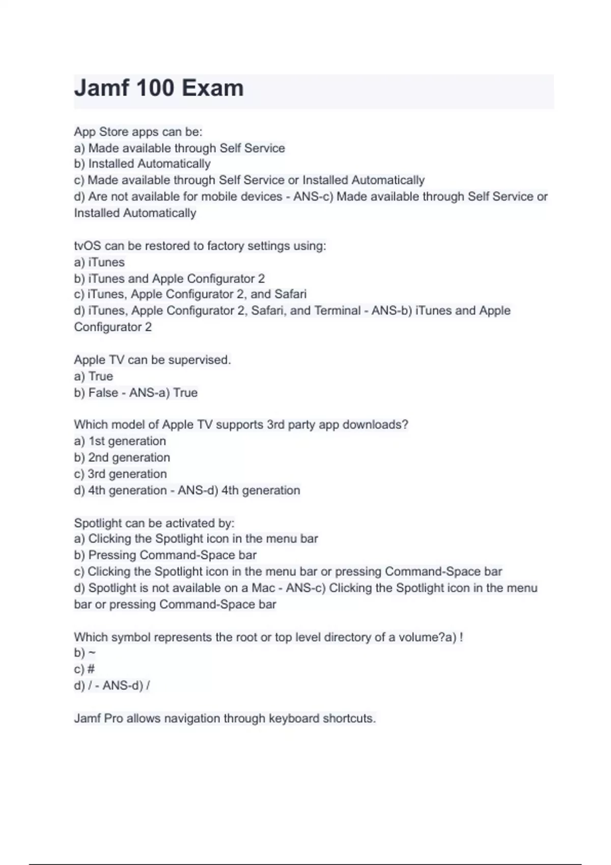 Jamf 100 Exam