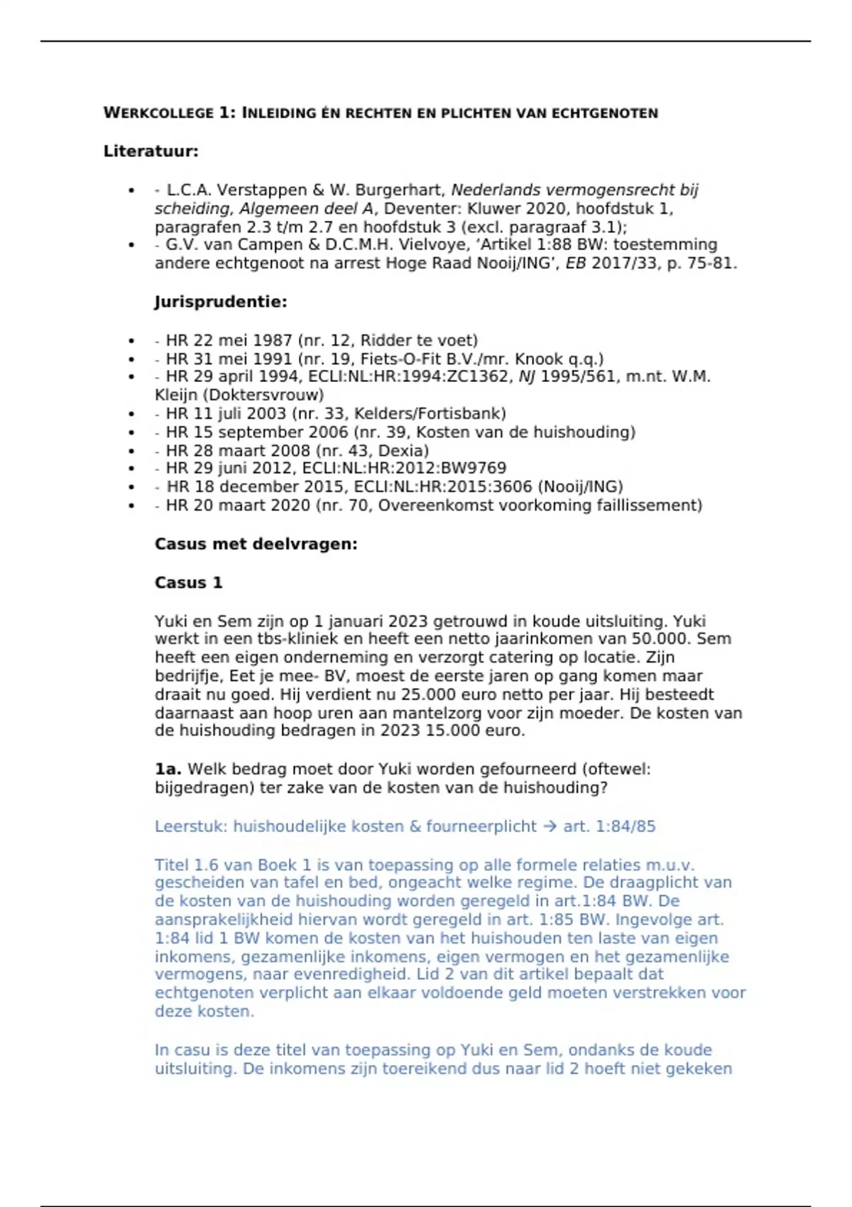 WERKCOLLEGE 1: INLEIDING ÉN RECHTEN EN PLICHTEN VAN ECHTGENOTEN