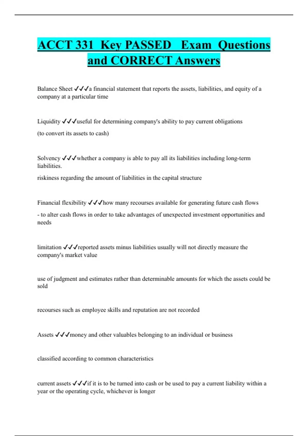 ACCT 331 Key PASSED Exam Questions and CORRECT Answers