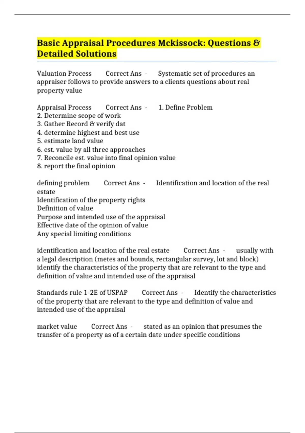Basic Appraisal Procedures Mckissock: Questions & Detailed Solutions