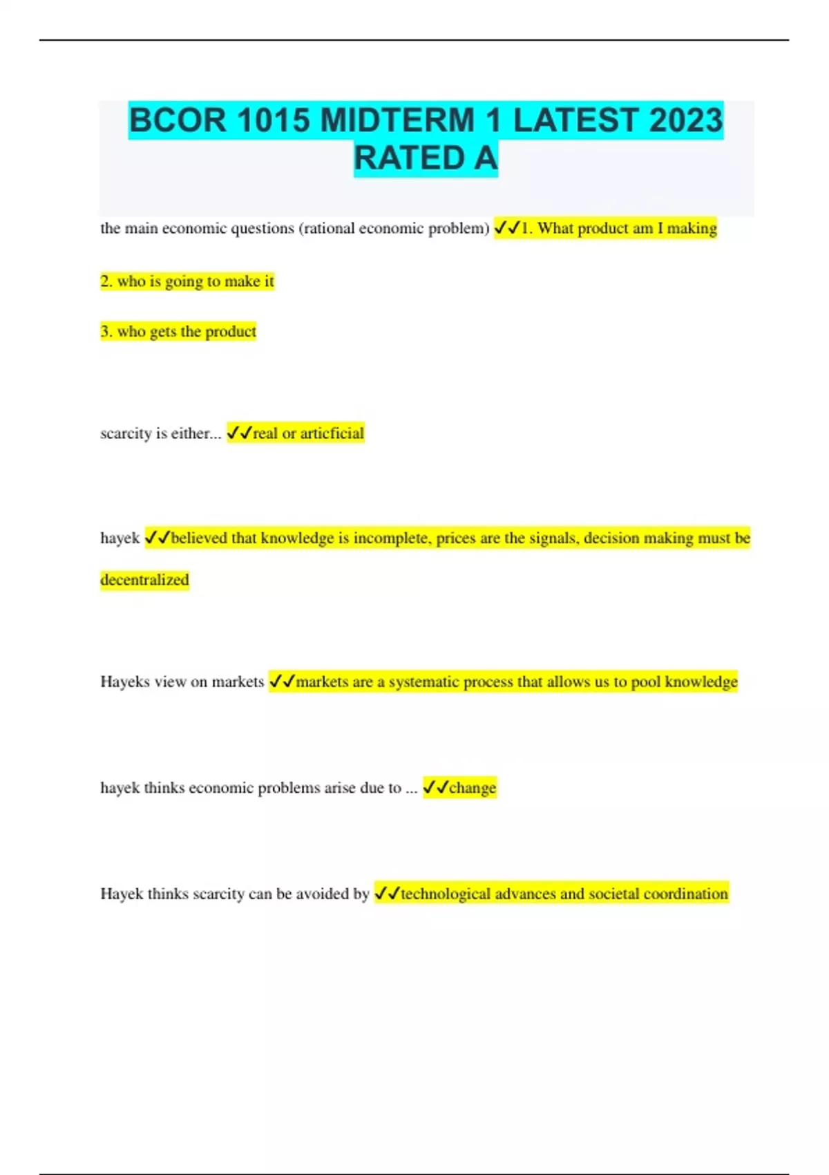 BCOR 1015 MIDTERM 1 LATEST 2023 RATED A
