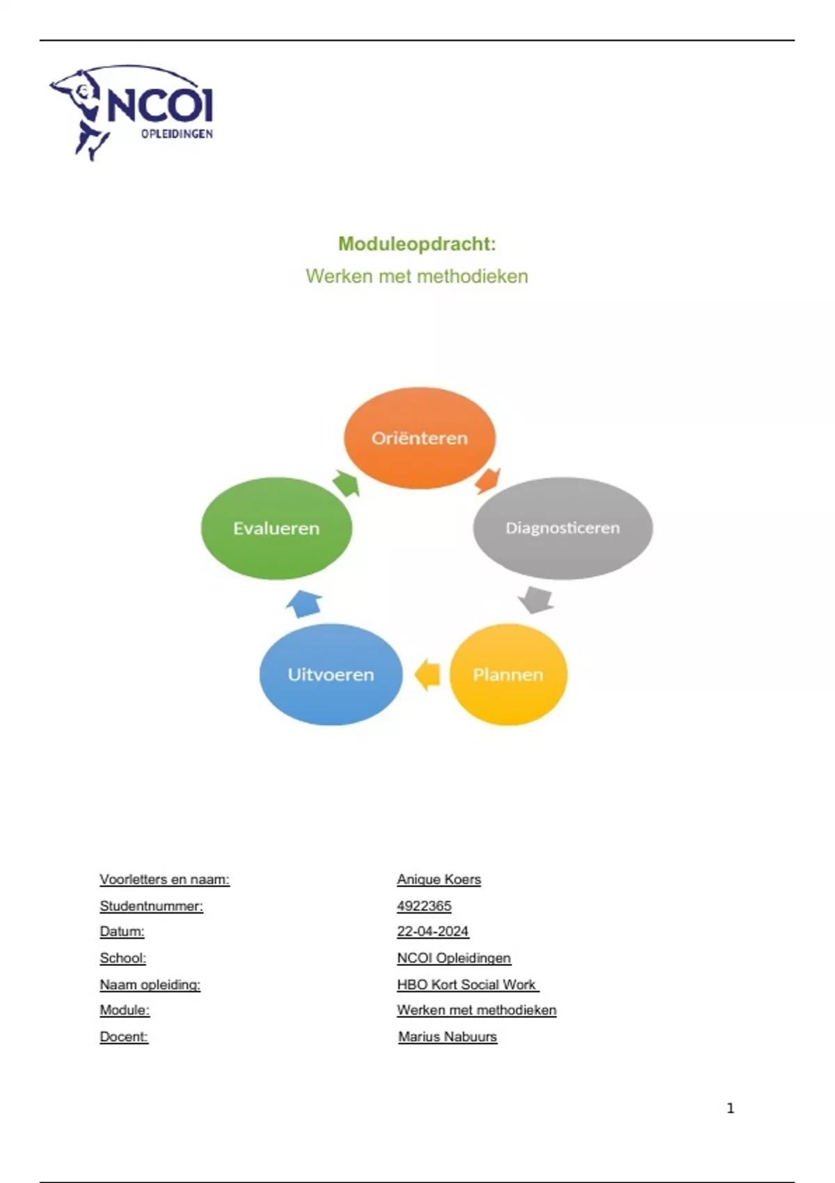 Voor u ligt mijn eindopdracht van de module ‘werken met methodieken’. Ik heb aan de hand van een