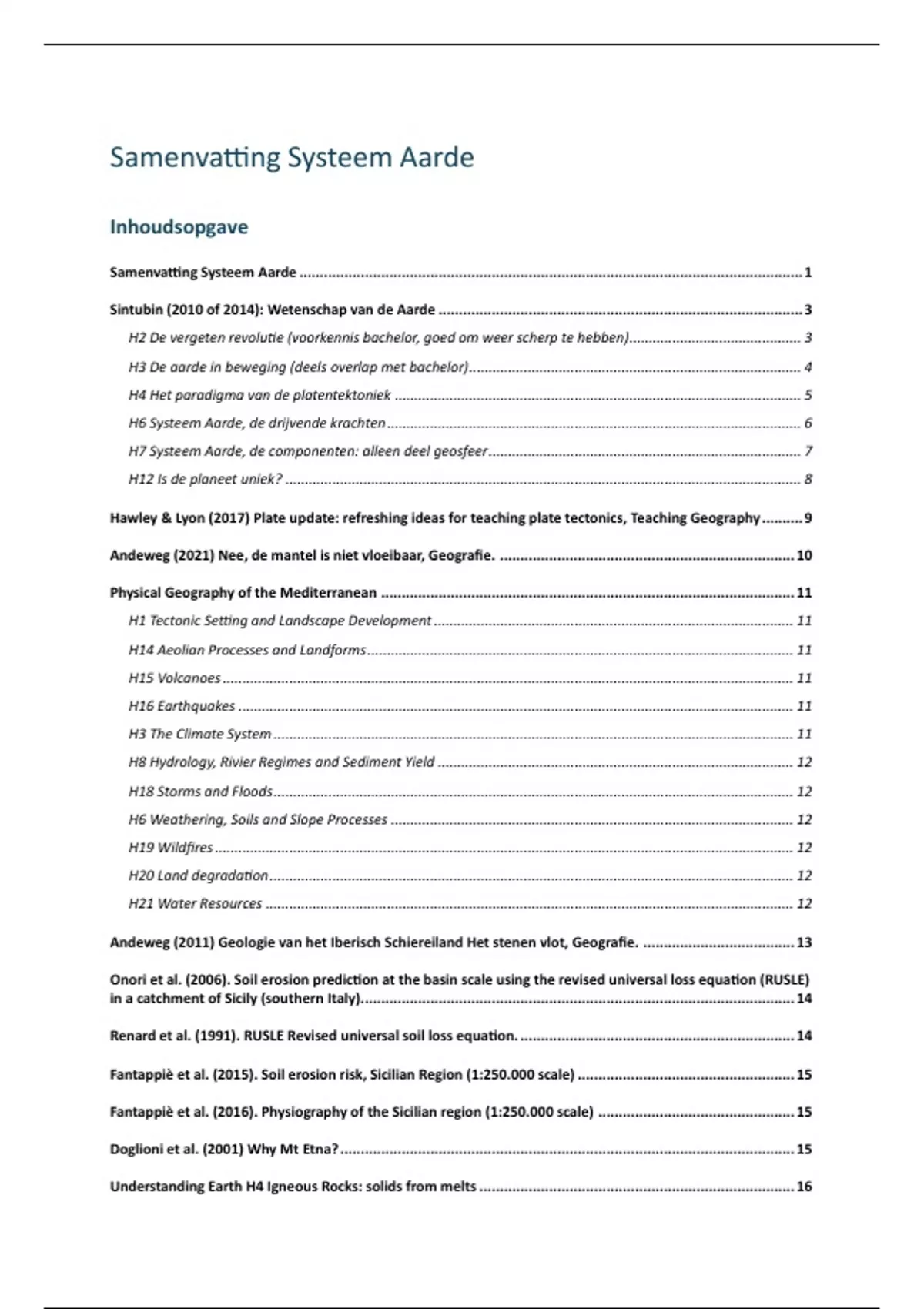 Sintubin (2010 of 2014): Wetenschap van de Aarde ......................................................................................... 3