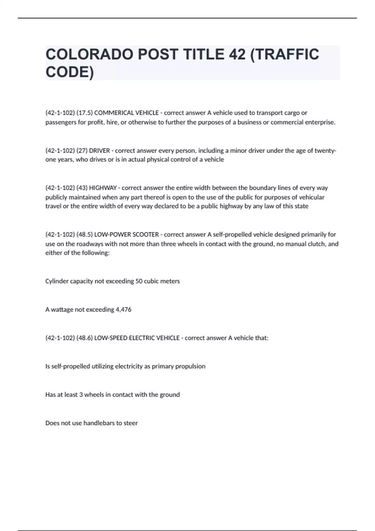 colorado post title 42 traffic code questions wi