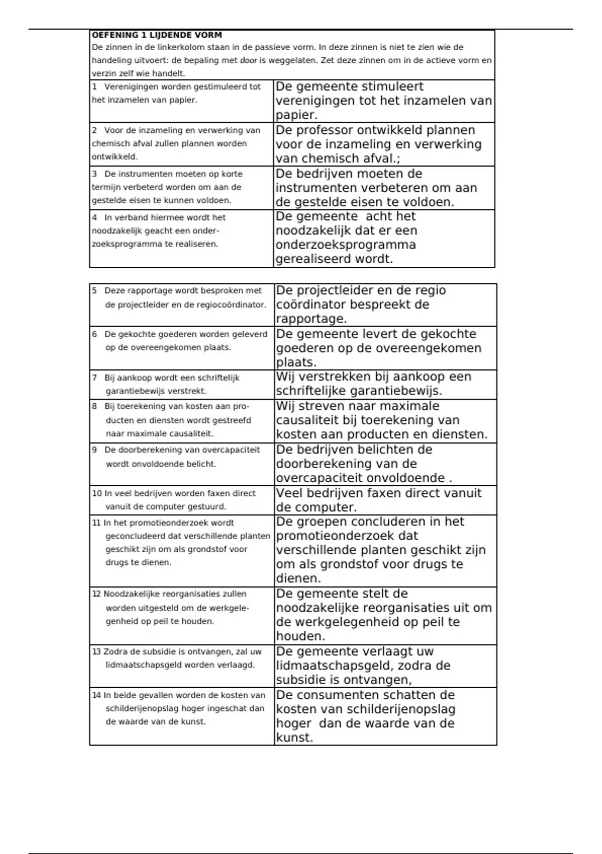 handeling uitvoert: de bepaling met door is weggelaten. Zet deze zinnen om in de actieve vorm en
