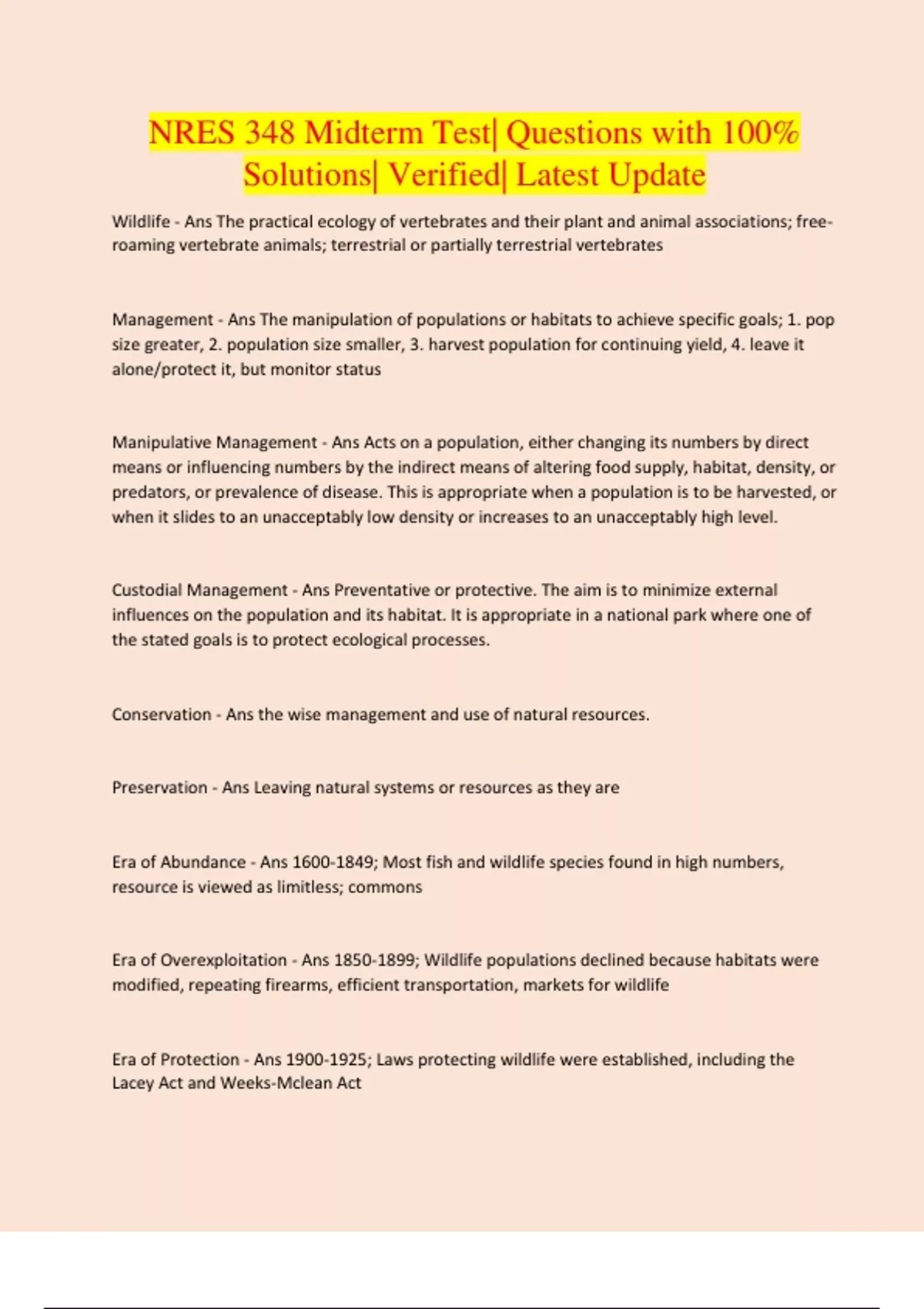 NRES 348 Midterm Test| Questions with 100% Solutions| Verified| Latest Update