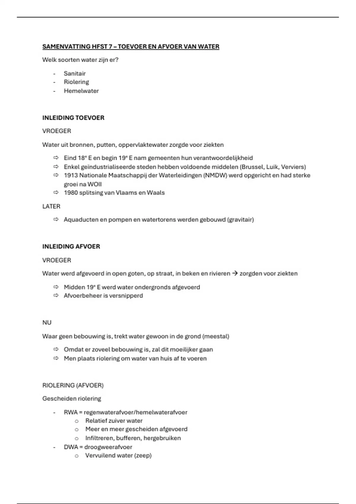 SAMENVATTING HFST 7 – TOEVOER EN AFVOER VAN WATER