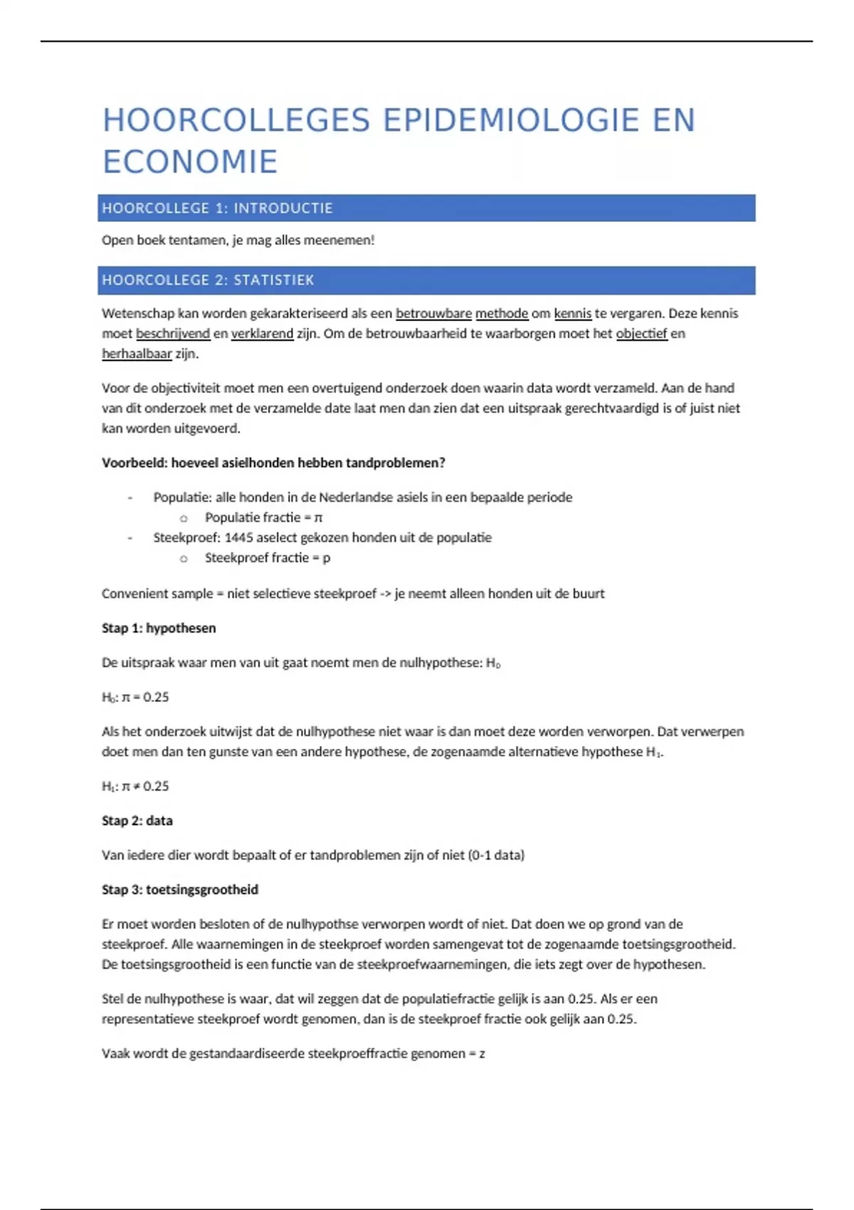 HOORCOLLEGE 2: STATISTIEK