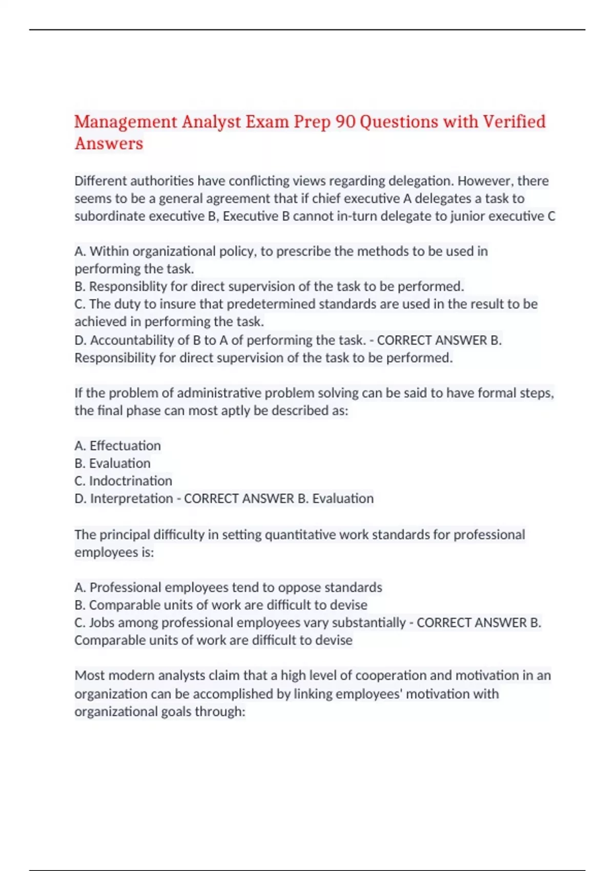 D. Make delegation of authority possilbe - CORRECT ANSWER A. Coordinate work