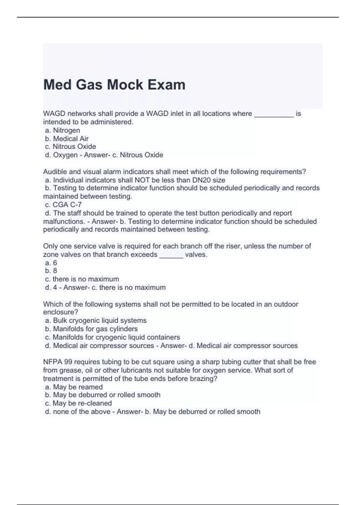 Med Gas Mock Exam with complete solutions