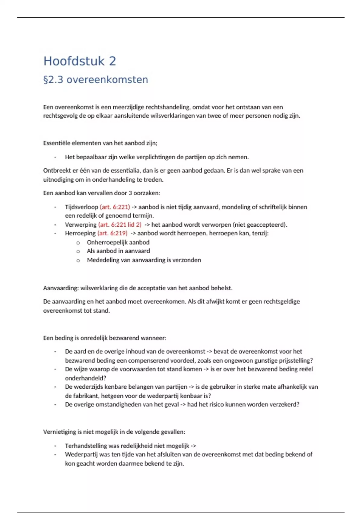 - Tijdsverloop (art. 6:221) -> aanbod is niet tijdig aanvaard, mondeling of schriftelijk binnen