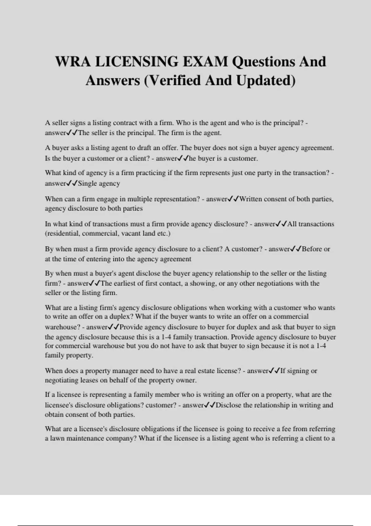 WRA LICENSING EXAM Questions And Answers (Verified And Updated)