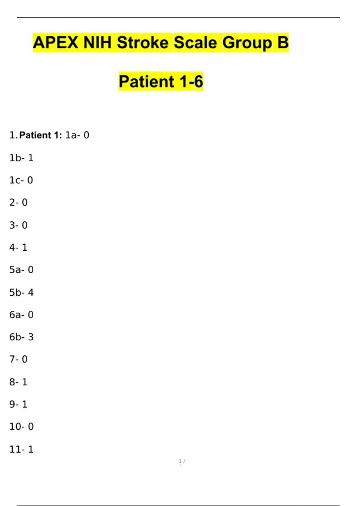 APEX NIH Stroke Scale Group B Patient 1-6 (Complete)