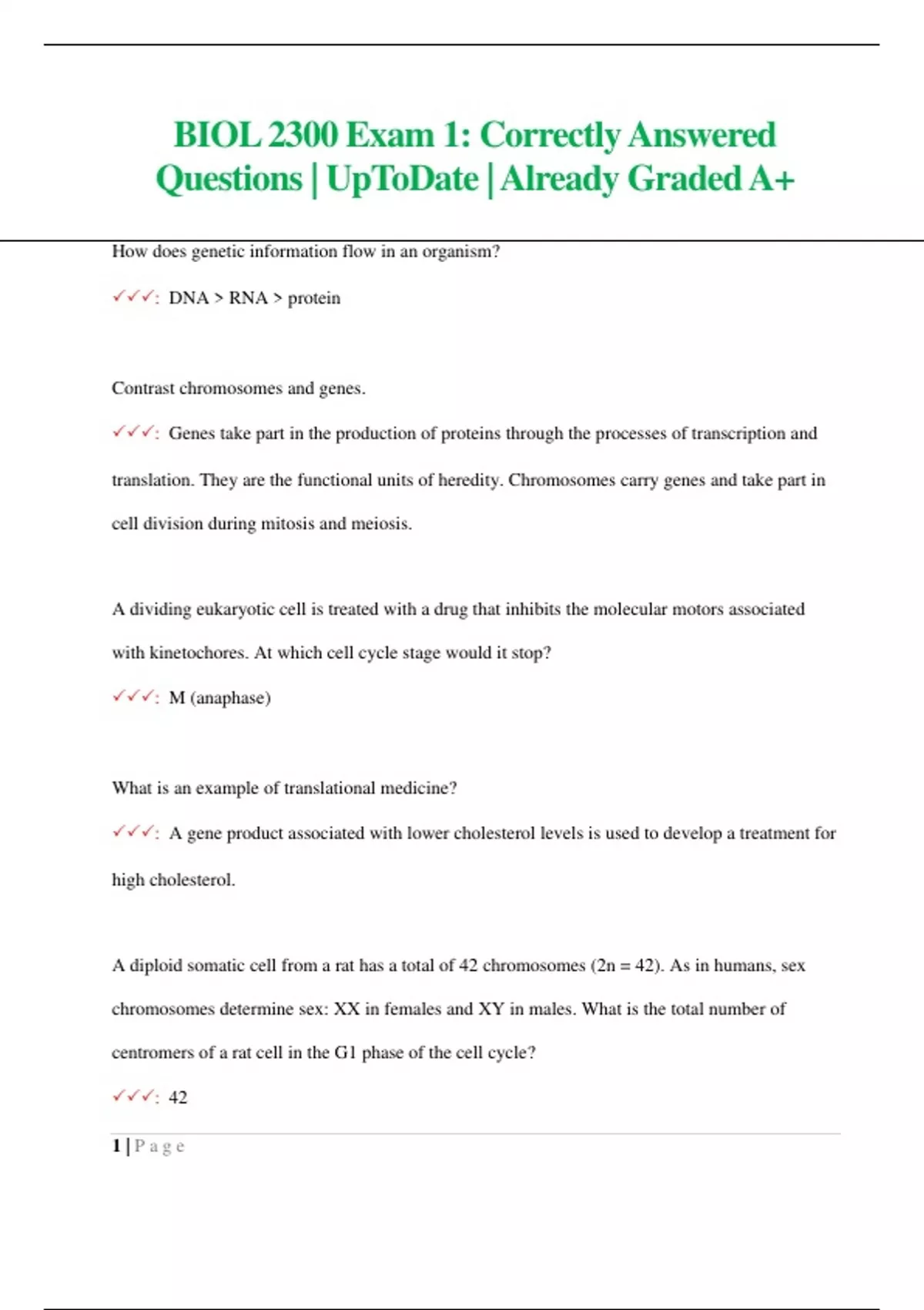BIOL 2300 Exam 1: Correctly Answered Questions| UpToDate | Already Graded A