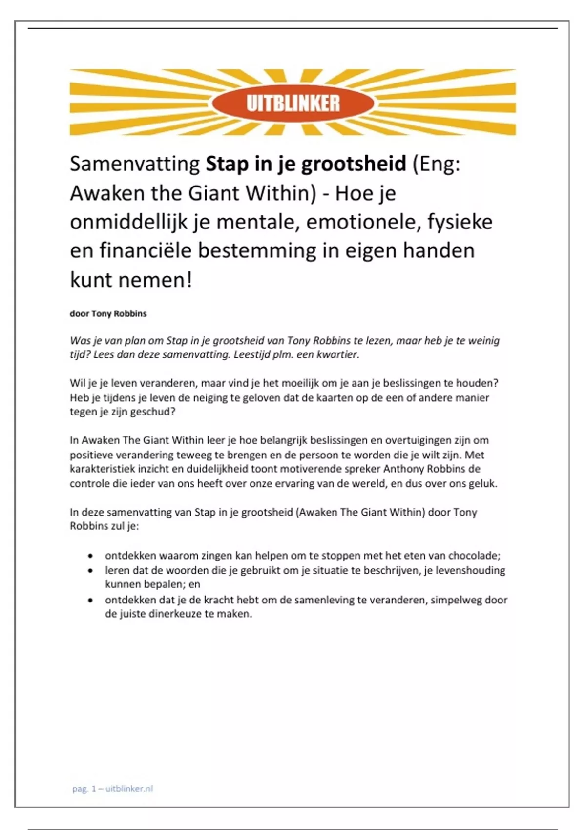 Was je van plan om Stap in je grootsheid van Tony Robbins te lezen, maar heb je te weinig