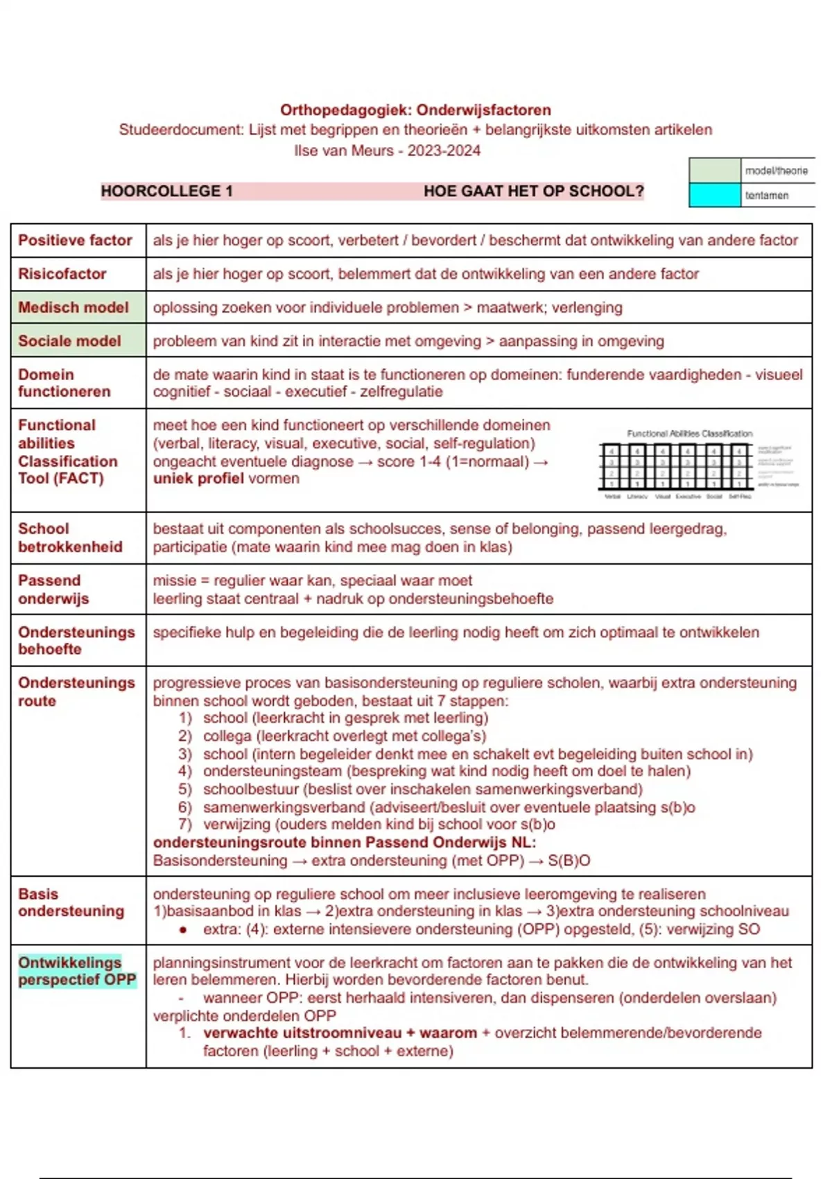 Studeerdocument: Lijst met begrippen en theorieën + belangrijkste uitkomsten artikelen