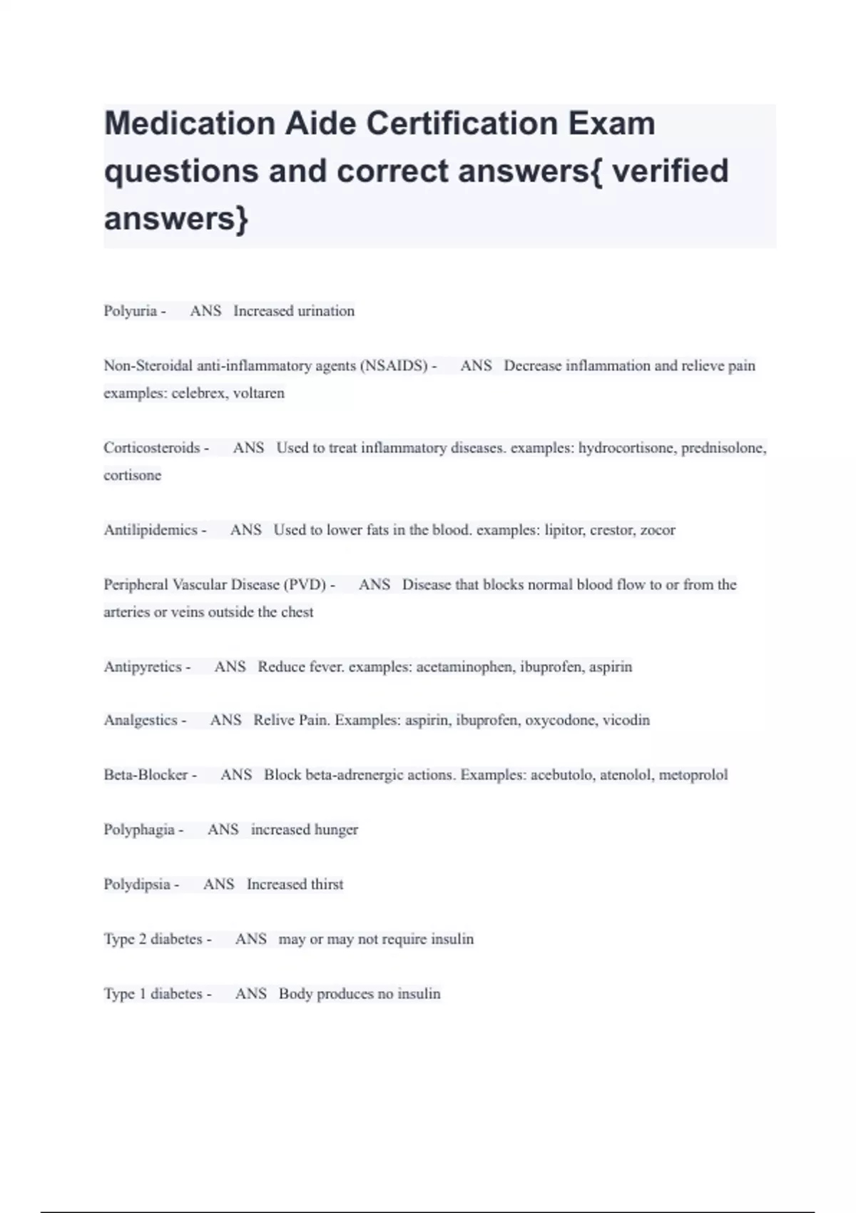 Medication Aide Certification Exam questions and correct answers{ verified answers}