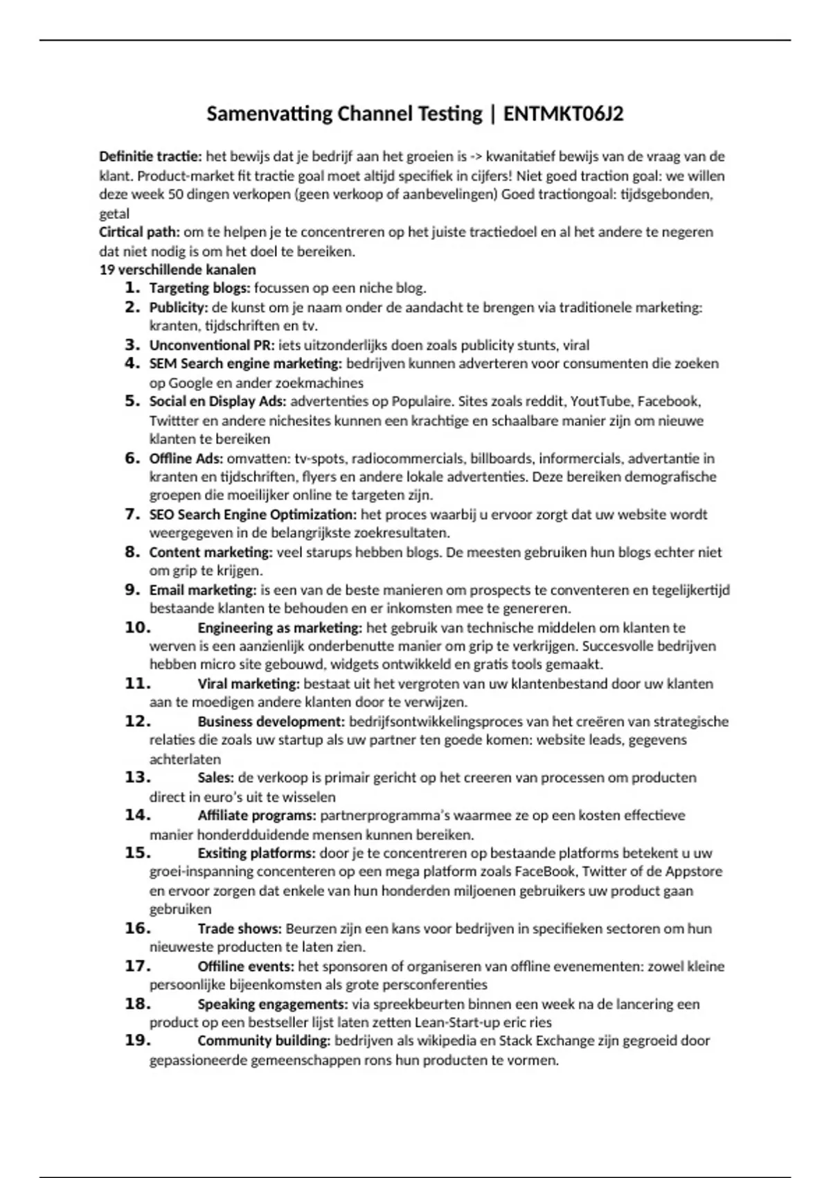 Samenvatting Channel Testing | ENTMKT06J2