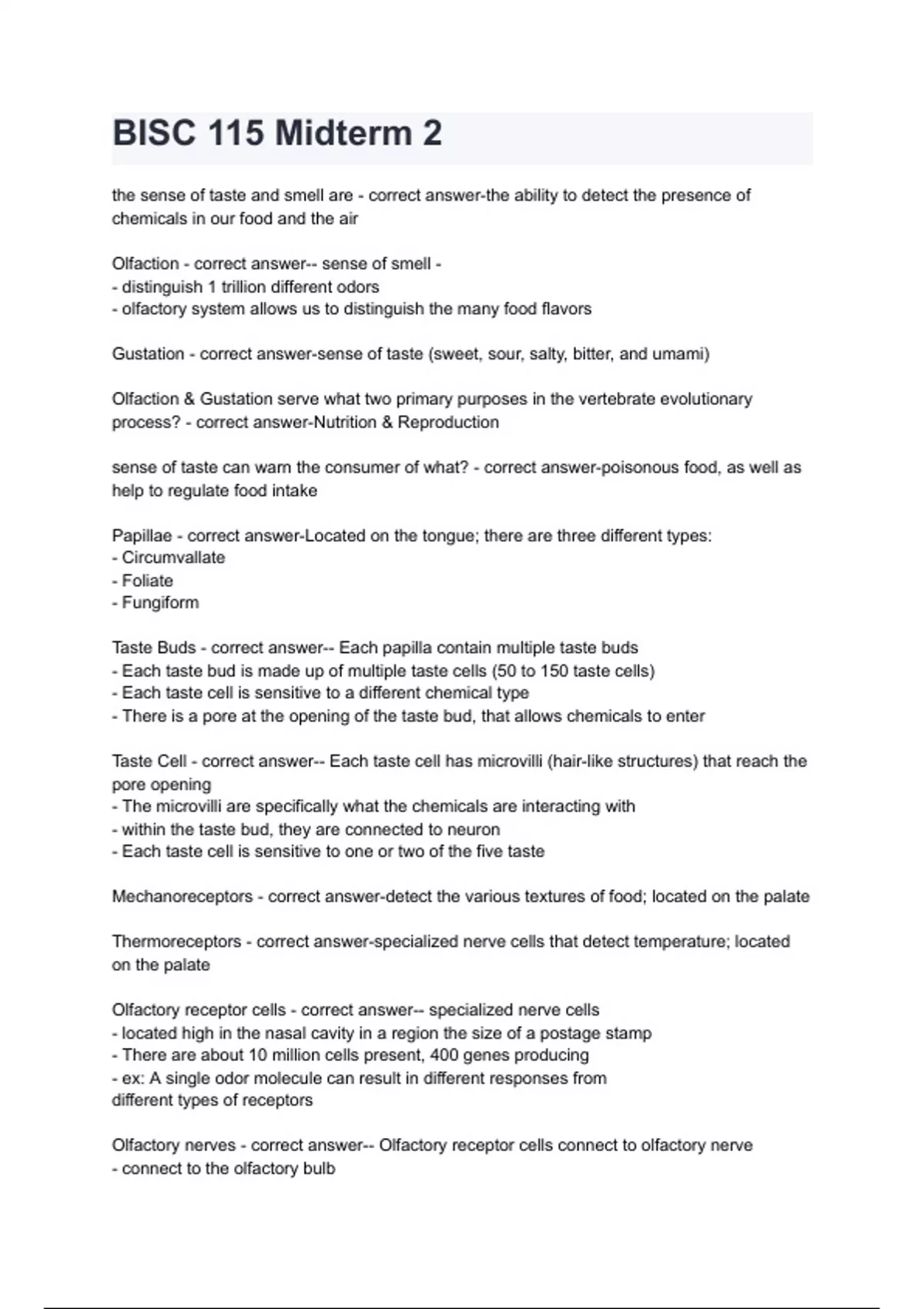 provided from what? - correct answer-taste receptors, olfactory receptors,