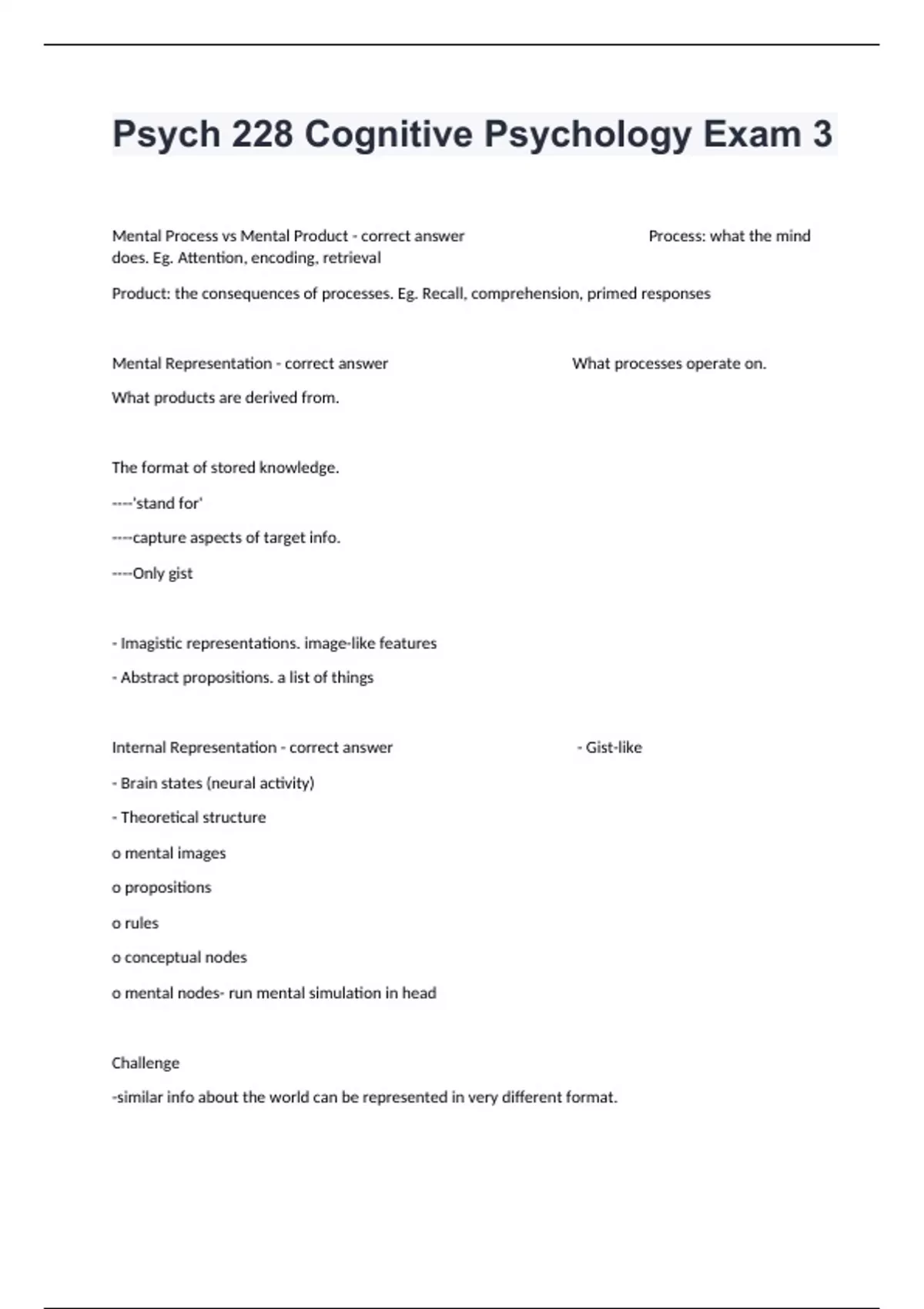 Psych 228 Cognitive Psychology Exam 3 Questions And Answers 100% Accurate A+ Graded.