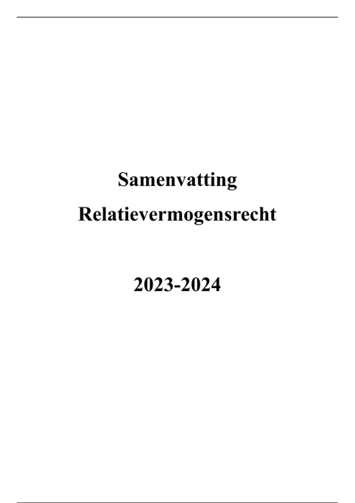 Samenvatting Volledige tentamenvoorbereiding Relatievermogensrecht