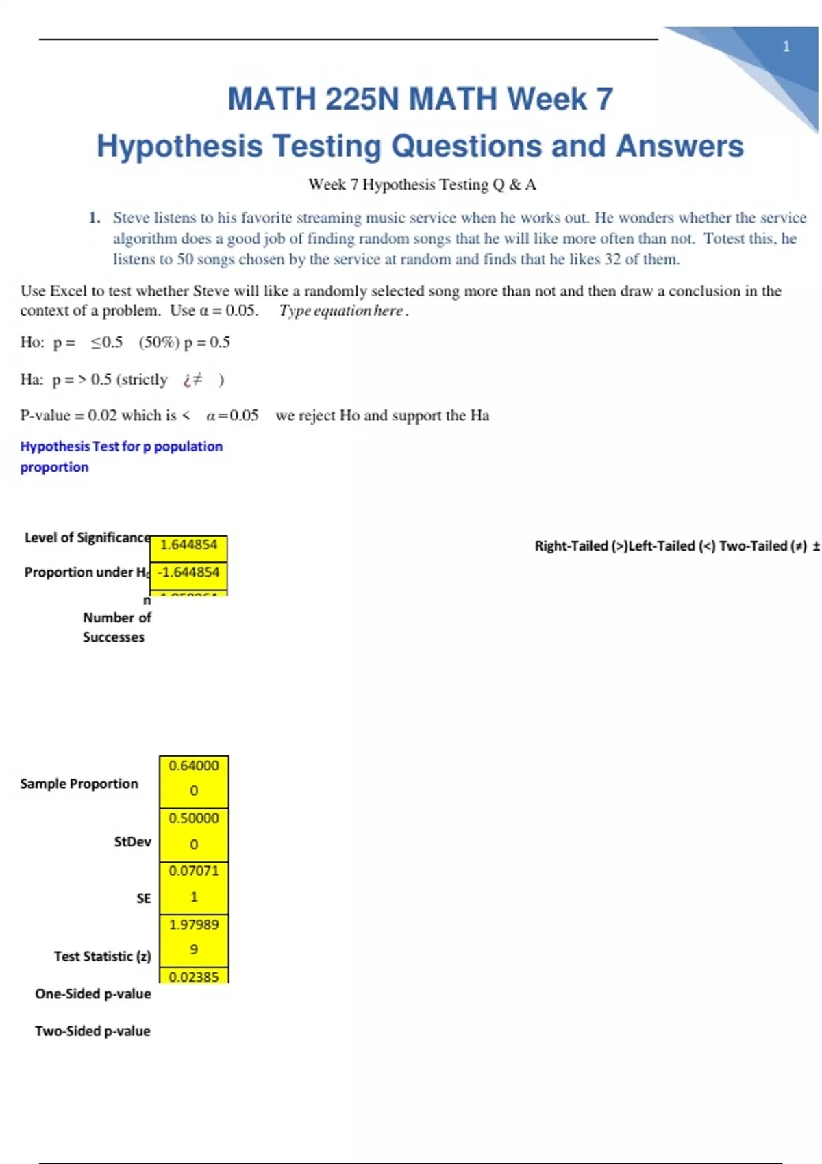 MATH 225N MATH Week 7 Hypothesis Testing Questions and Answers/MATH 225N MATH Week 7 Hypothesis Testing Questions and Answers/MATH 225N MATH Week 7 Hypothesis Testing Questions and Answers