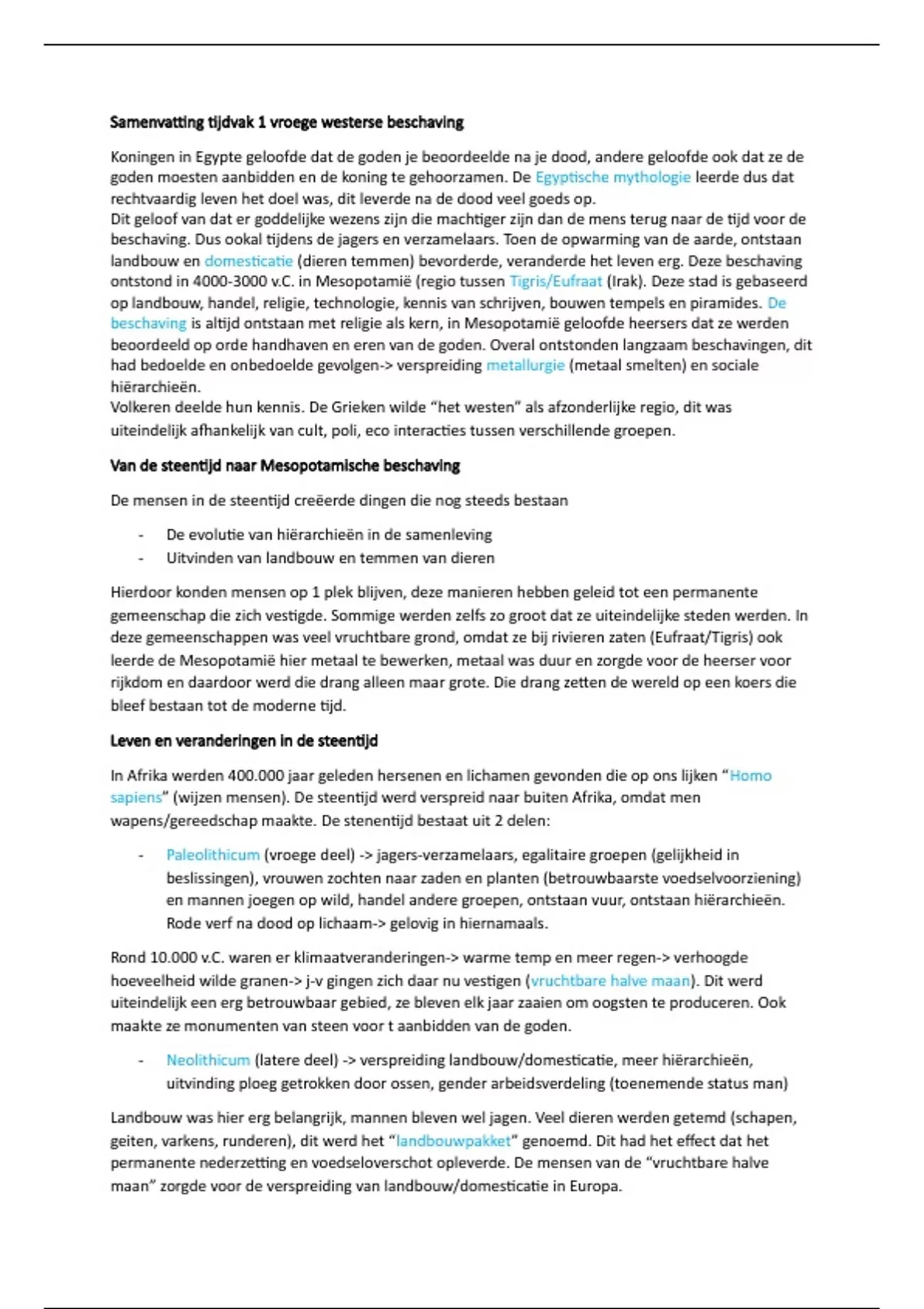 Samenvatting tijdvak 1 vroege westerse beschaving