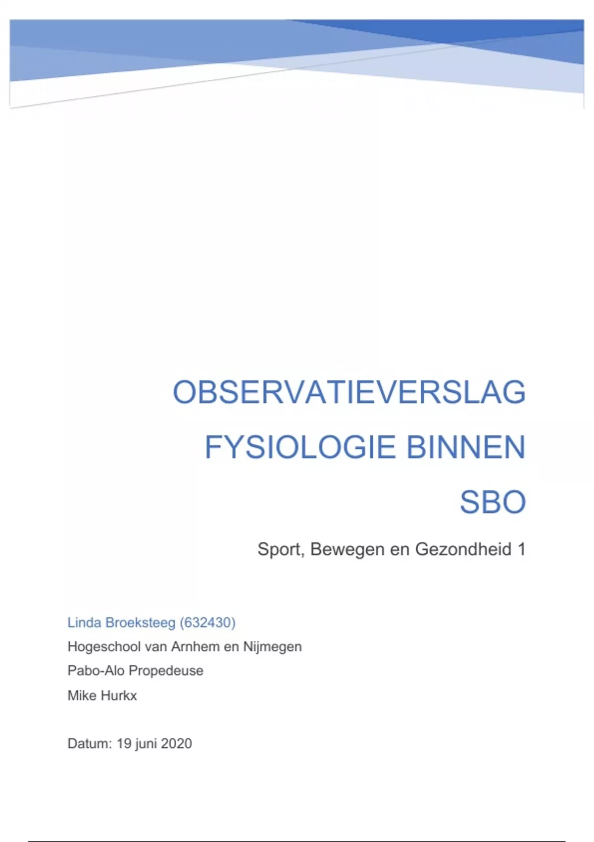 Voor u ligt het observatieverslag fysiologie binnen SBO. Dit observatieverslag heb ik, Linda