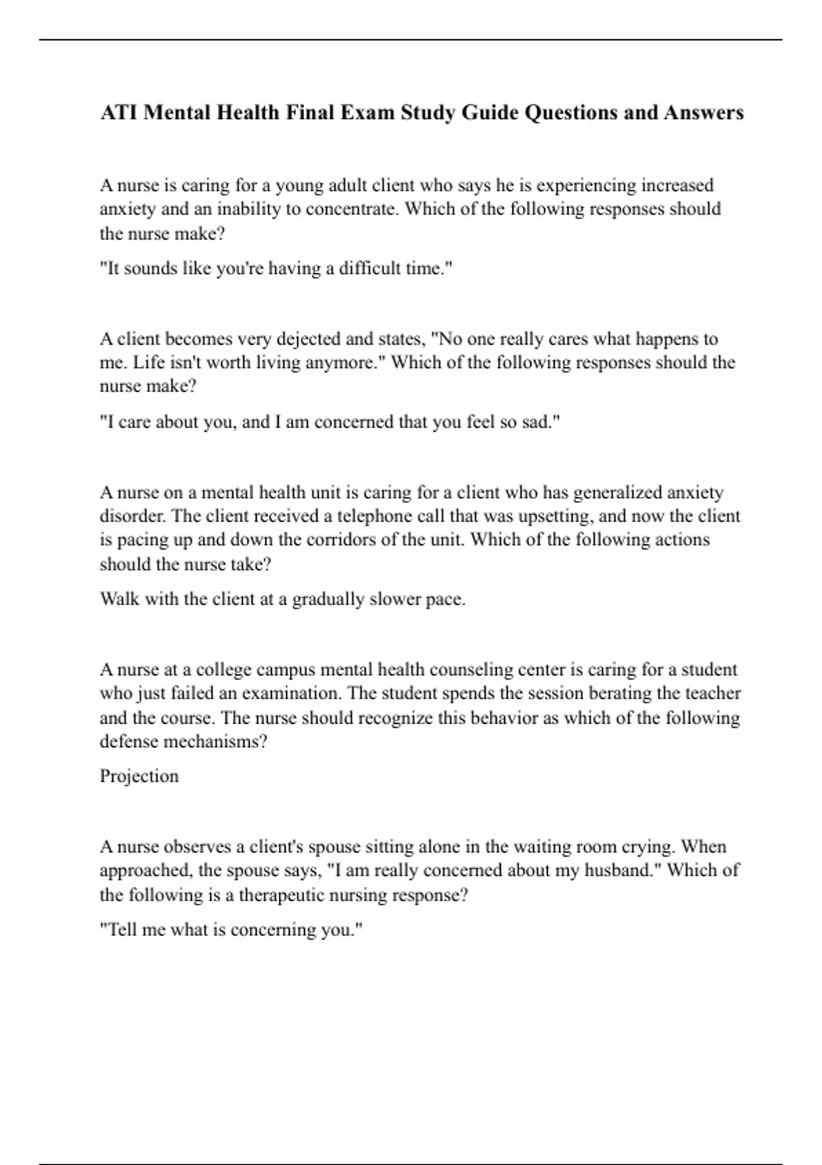 ATI Mental Health Final Exam Study Guide Questions and Answers