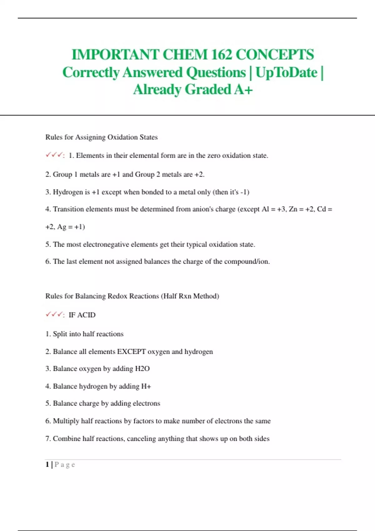 IMPORTANT CHEM 162 CONCEPTS Correctly Answered Questions| UpToDate | Already Graded A+