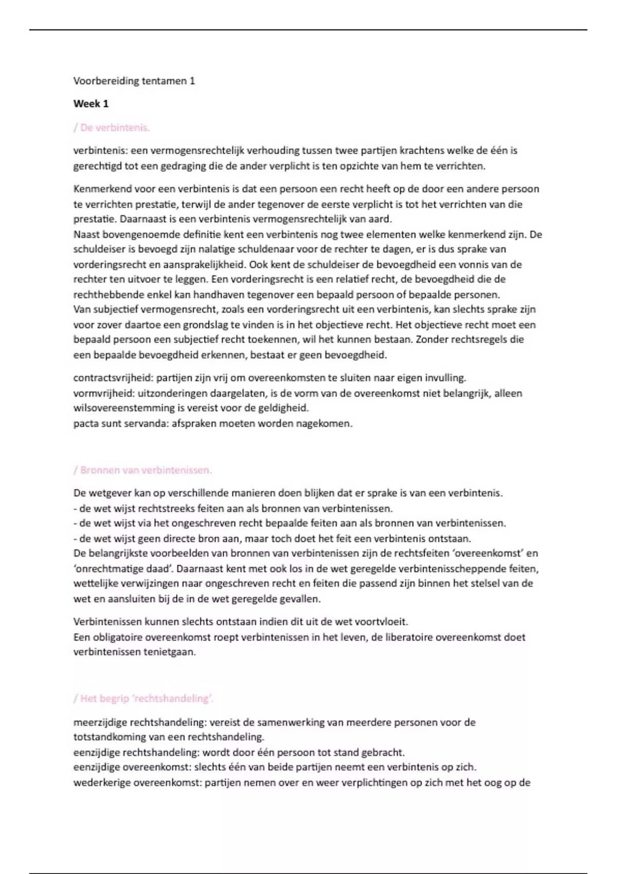 inleiding verbintenissenrecht alle tentamenstof. per week, inclusief arresten.