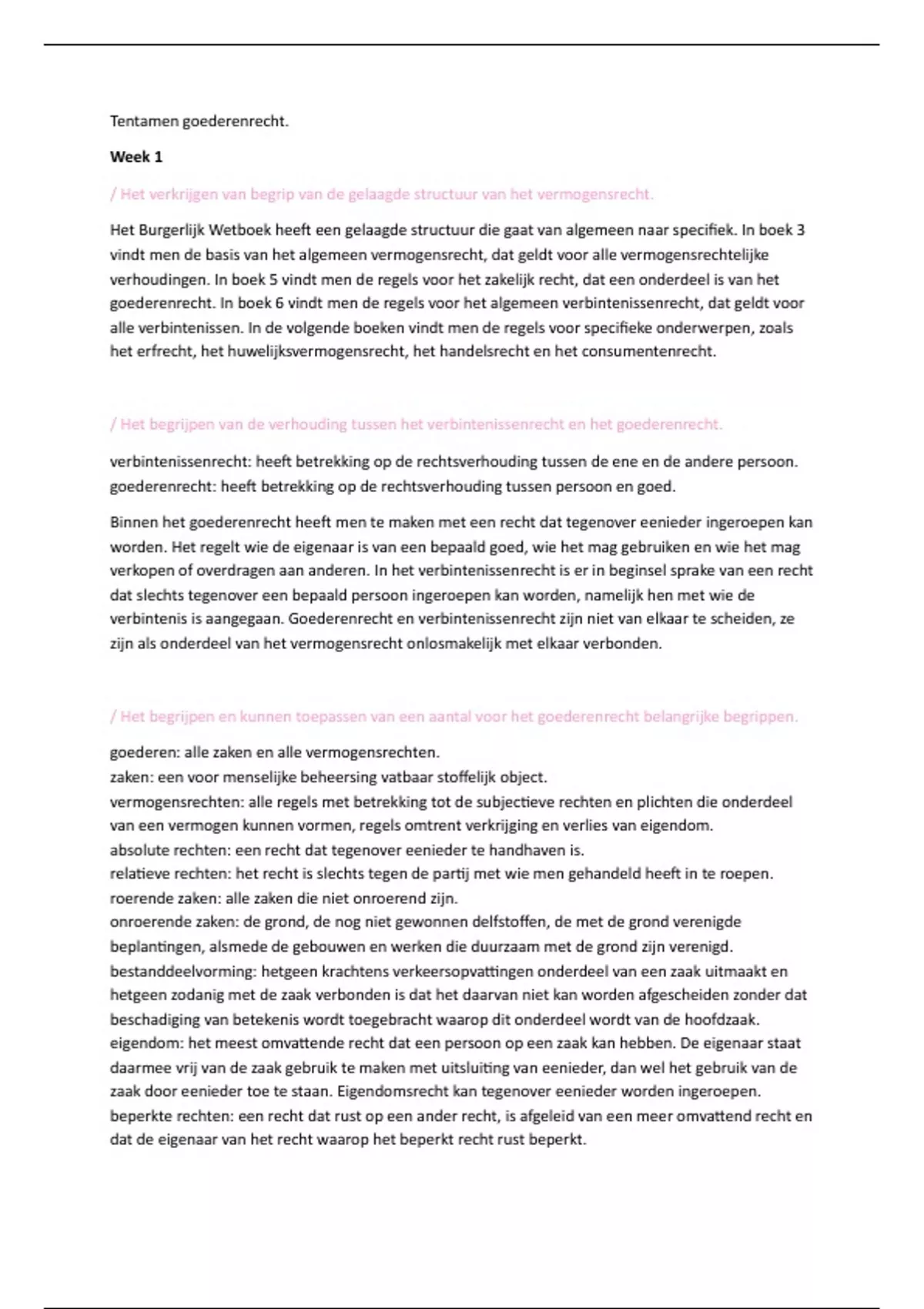 inleiding goederenrecht alle tentamenstof. per week, inclusief arresten.