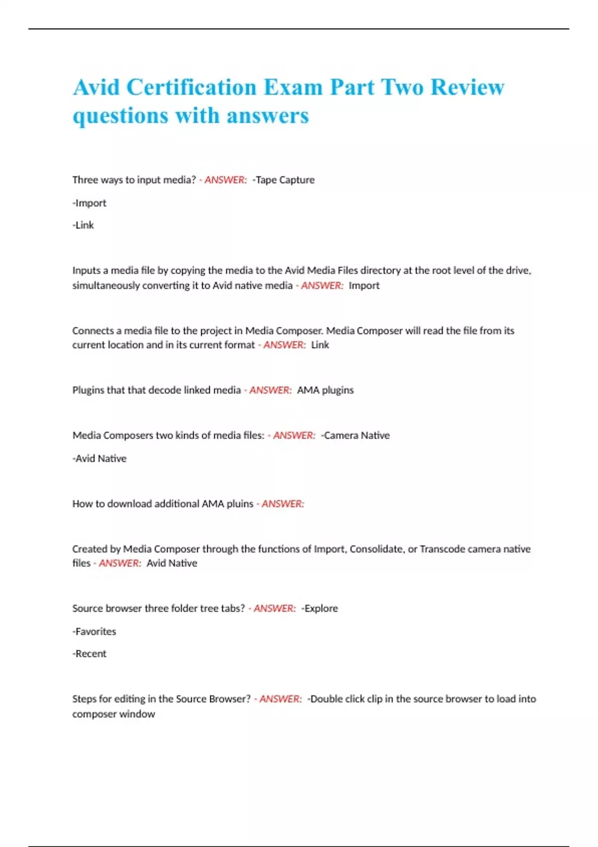 Avid Certification Exam Part Two Review questions with answers